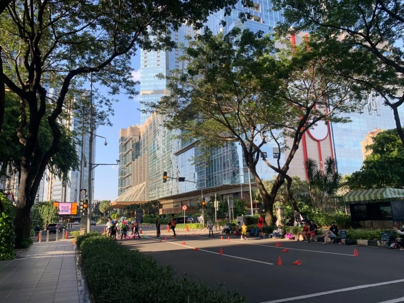 차 없는 거리로 바뀐 휴일, 자카르타 SCBD 퍼시픽 플레이스 몰 앞에는 인라인 스케이트 수업을 받는 아이들이 저마다 알록달록한 헬멧을 쓰고 바람을 가르며 스케이트를 굴린다.