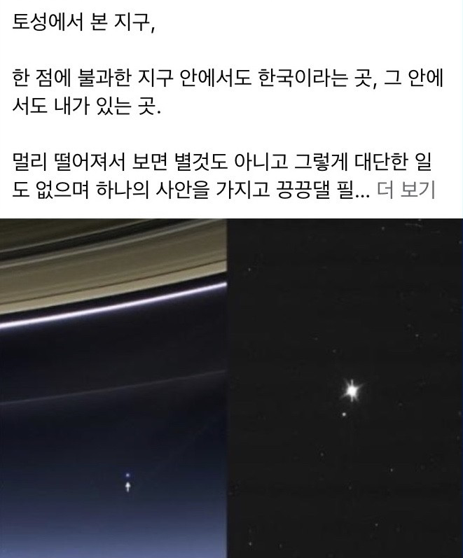 세상은 정말 넓고 저 우주에서 보면 대한민국은 그중 아주 작은 점에 불과하고 우리 개개인은 보이지도 않는다. 그러니 내가 속한 사회나 주변인들의 시선에 휘둘리지 말고, 눈치 보지 말고 자신의 삶을 제대로 살아나가는 게 중요한 것 같다.
