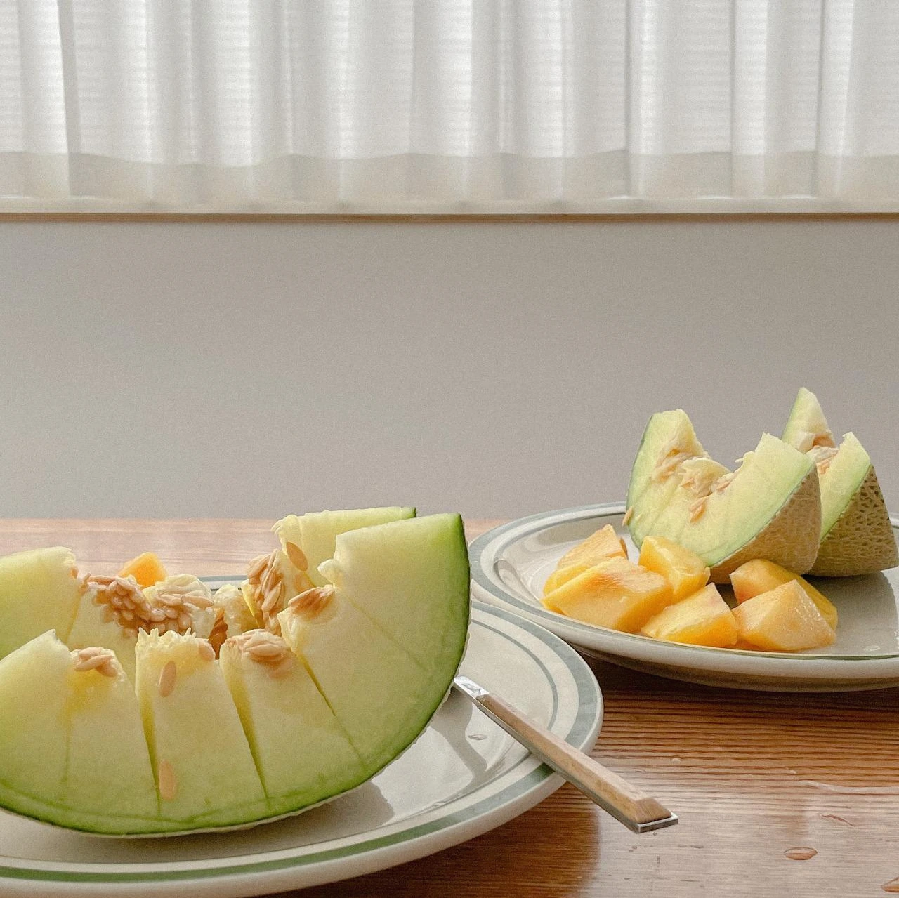 제주도 여행을 가서 아주 예쁜 숙소에 묵었다. 아침에 전날 사둔 복숭아와 멜론을 여유롭게 깎아 먹는데.. 그렇게 행복할 수가 없었다.