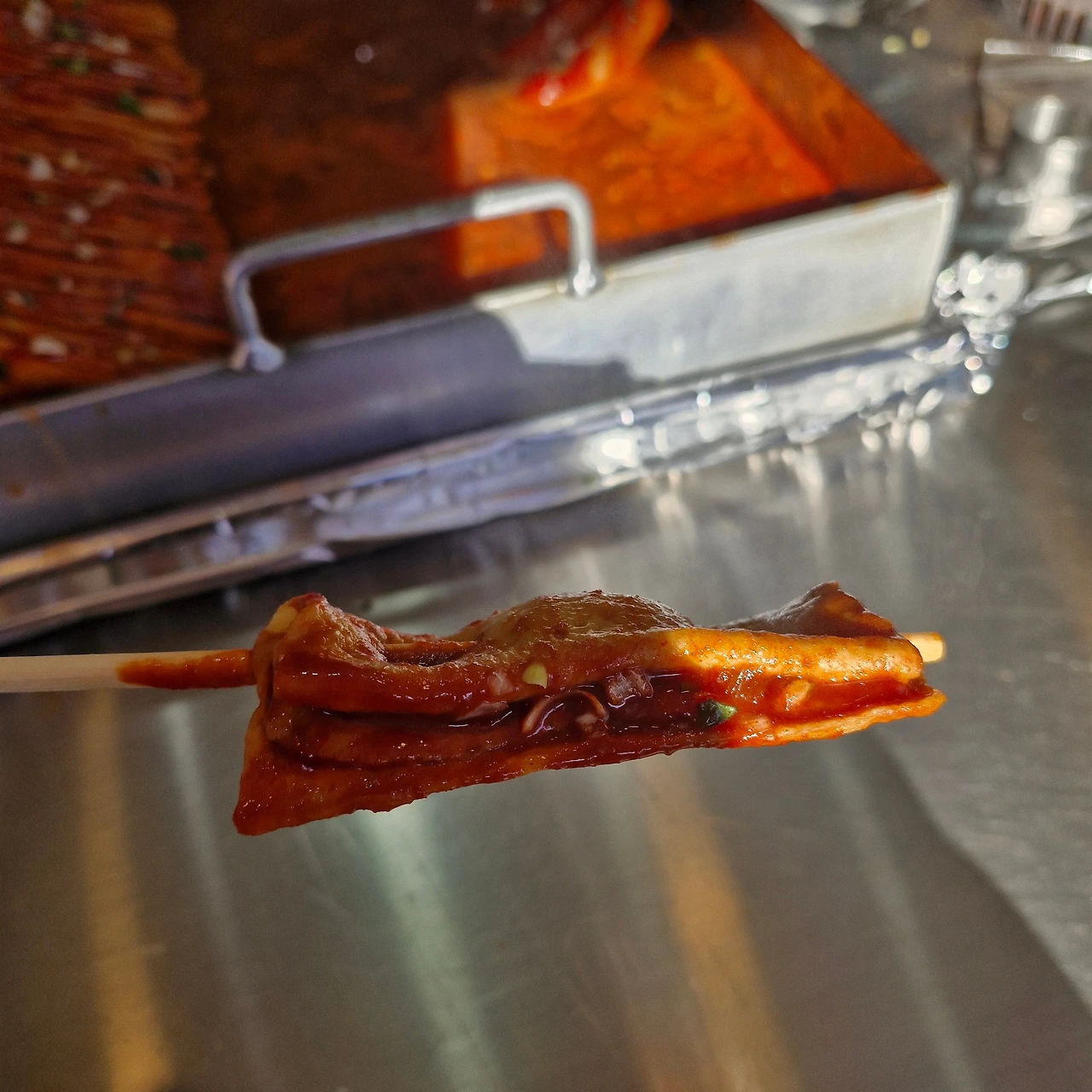 매콤한 떡볶이 소스가 잔뜩 밴 빨간 어묵.