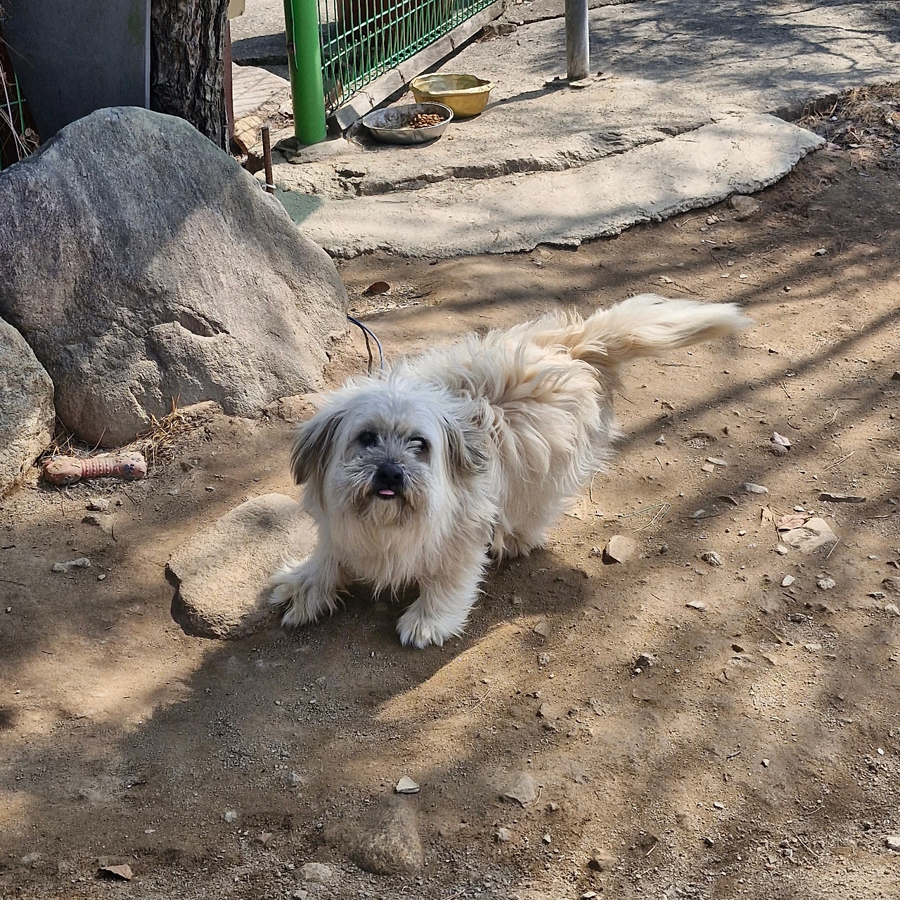 처음 만났을 때 강아지는 다가가도 다가오지 않고 짖지도 않고 모든 걸 체념한 표정으로 말을 거는 나를 멀찍이서 쳐다만 봤다. 그 모습이 눈에 밟혀서 동네에서도 제일 먼 곳에 있는 이 강아지를 매일 보러 갔다.