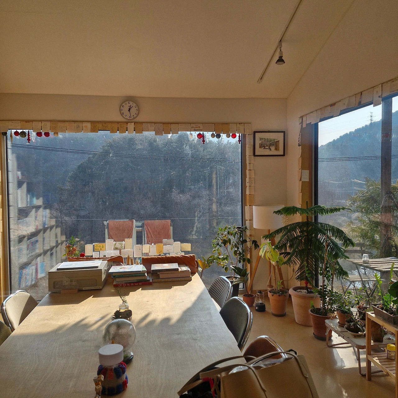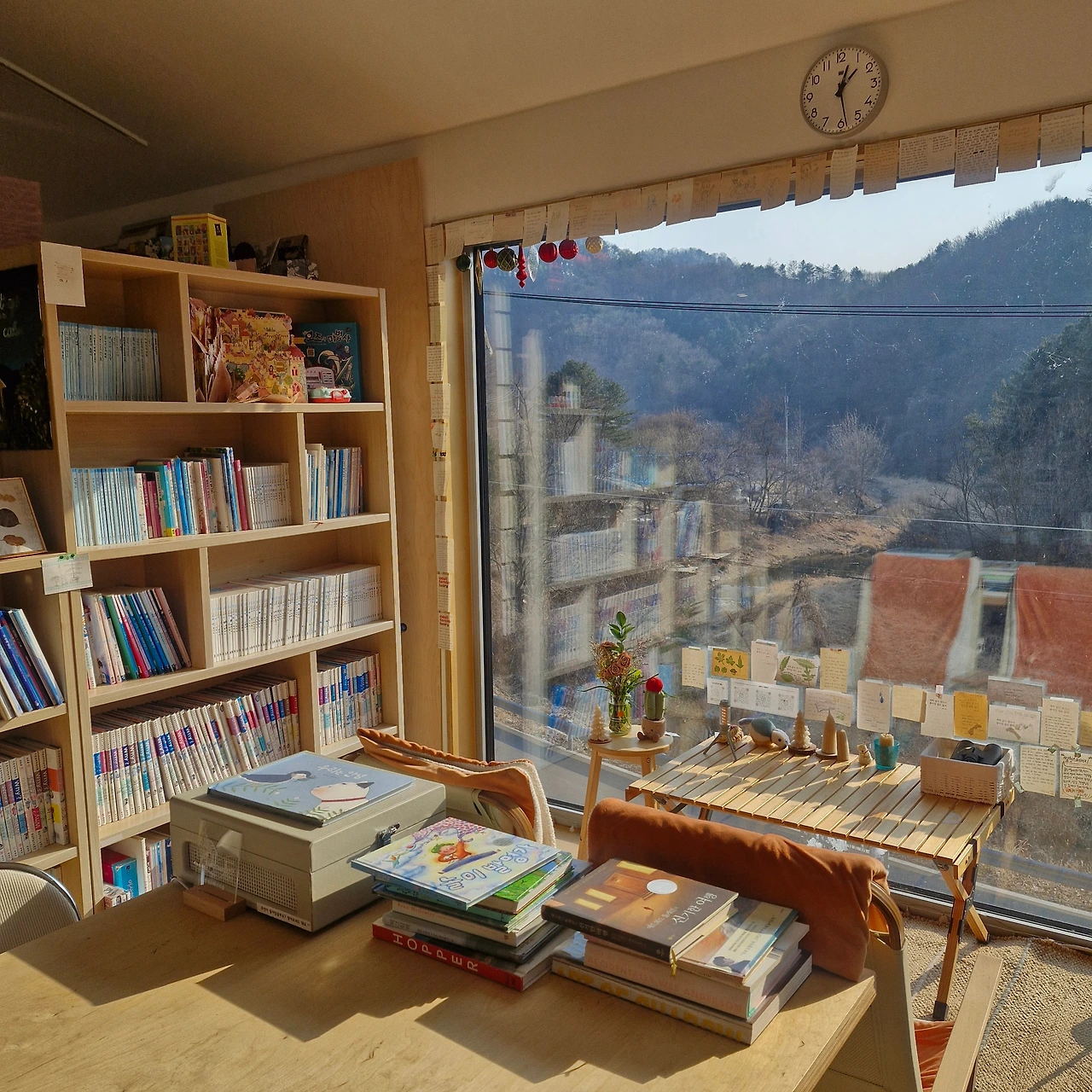 통창 가득 해가 잘 들던 썸숲의 공용서재.