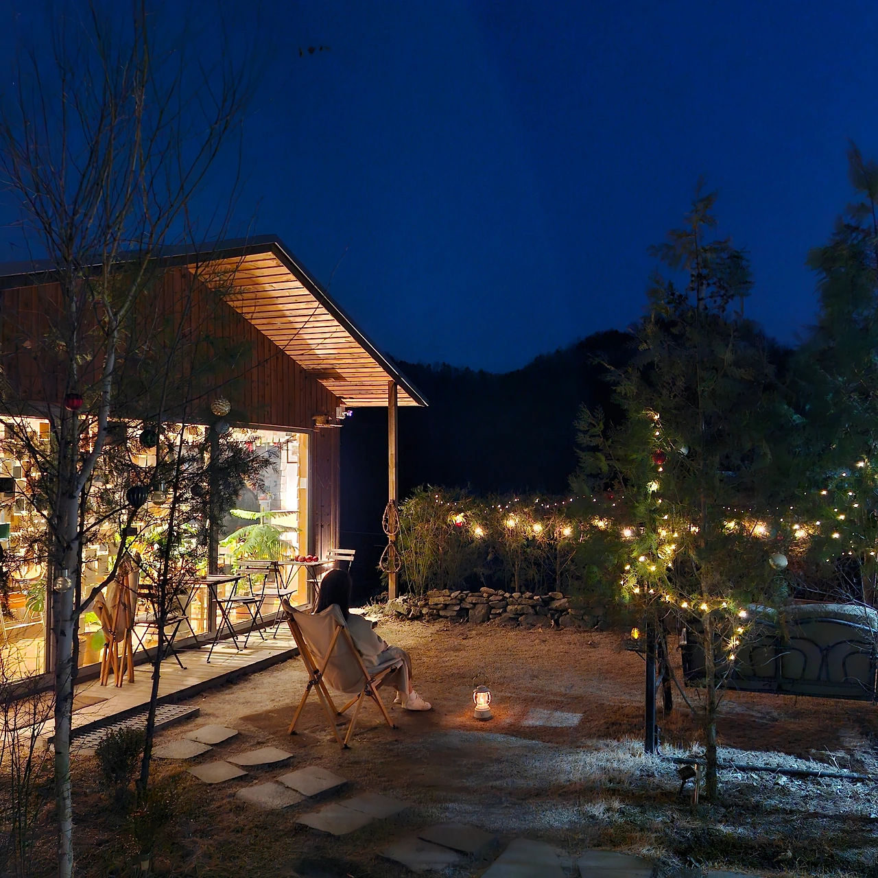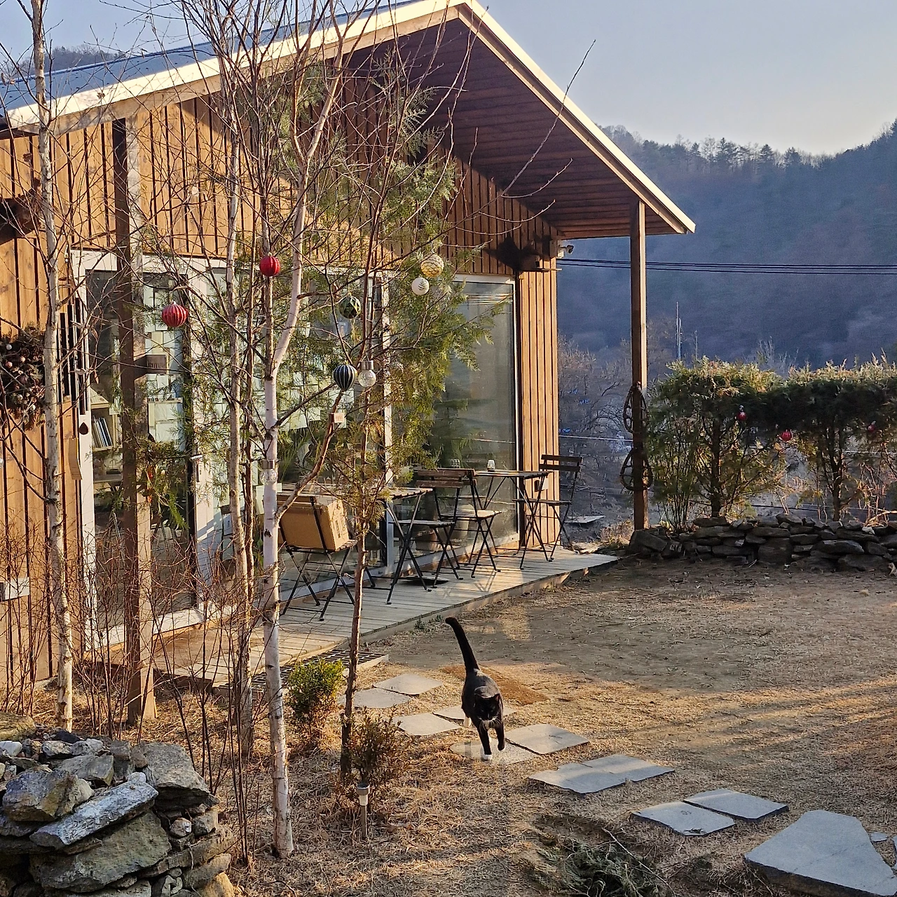 낮동안에는 통창의 산 풍경이 예쁜 바깥으로 해가 잘 들고,