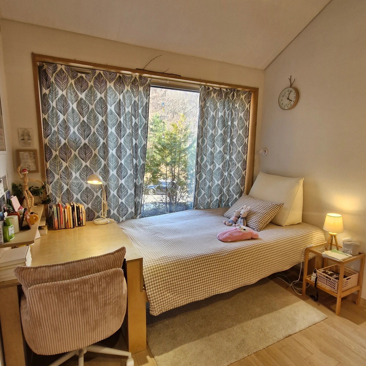 아침에도 해가 예쁘게 들어 떠나고 싶지 않았던 혼자만의 방.