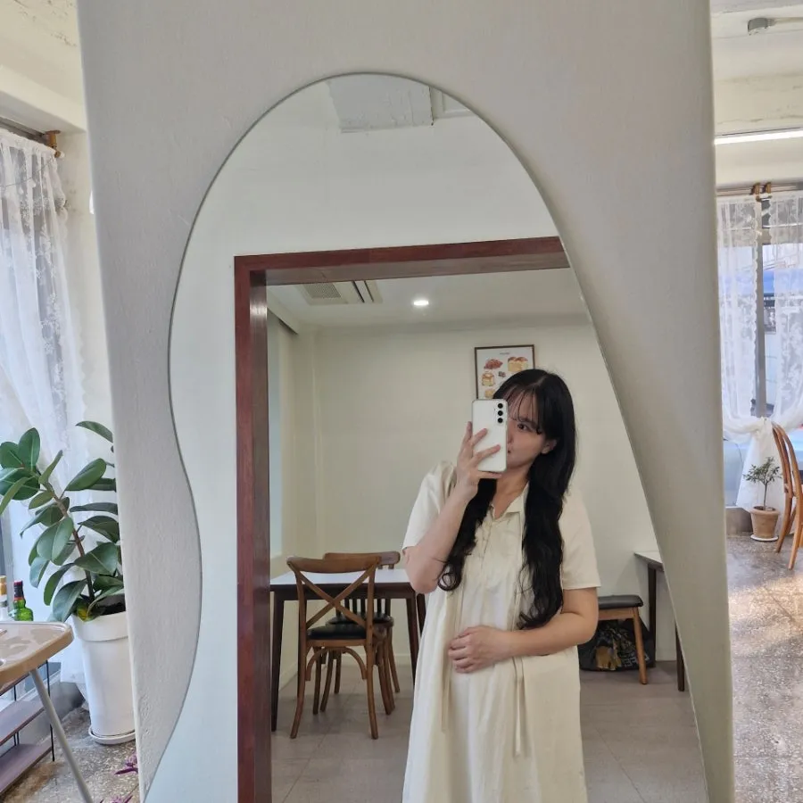 전시를 보고 난 뒤엔 내가 좋아하는 맛있는 디저트카페도 찾았다. 모처럼 맛있는 에끌레어로 당 충전을 하고 신나서 카페에 있던 예쁜 거울 앞에서 사진도 찍어봤다.