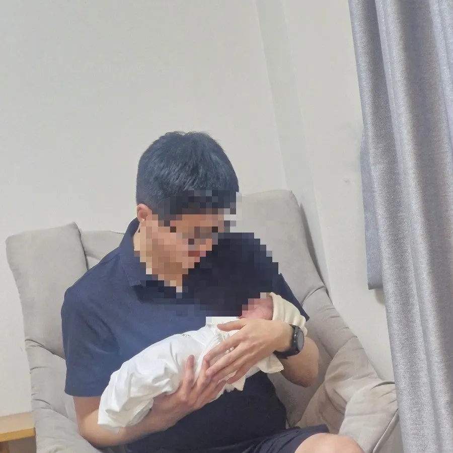 남편의 아기 안는 폼은 영 어색하기 그지없었지만