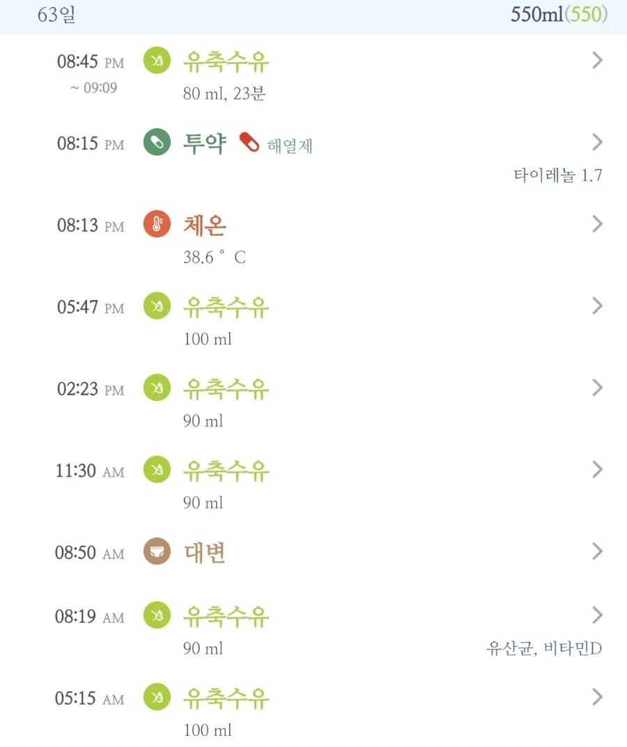 수유량이 줄지 않는지 잘 지켜봐야 하는데 원래 먹는 양이 적어서 평소랑 크게 차이가 나지 않았다.