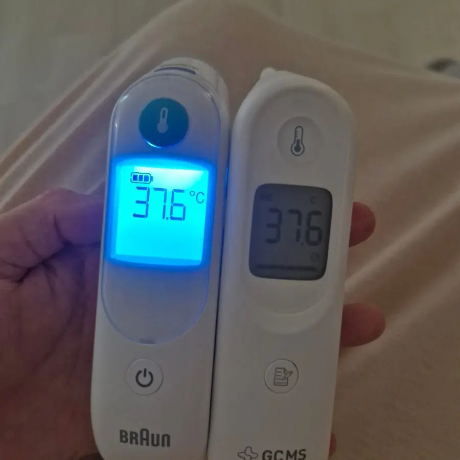 삼십분쯤 뒤에 체온을 쟀을 때 양쪽 귀 각각 38.3- 38.5 정도 측정되었다.