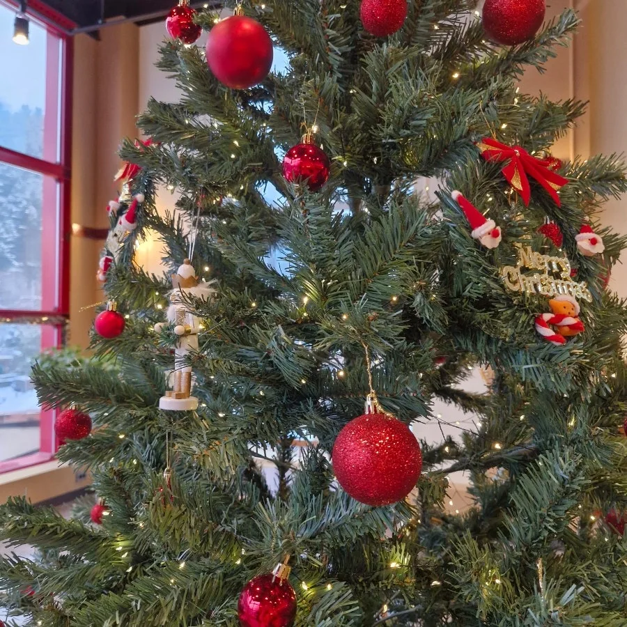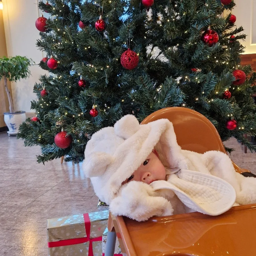 매장 중앙에 자리 잡고 있던 크리스마스트리 앞에서는 아기를 안고 사진도 찍었다.