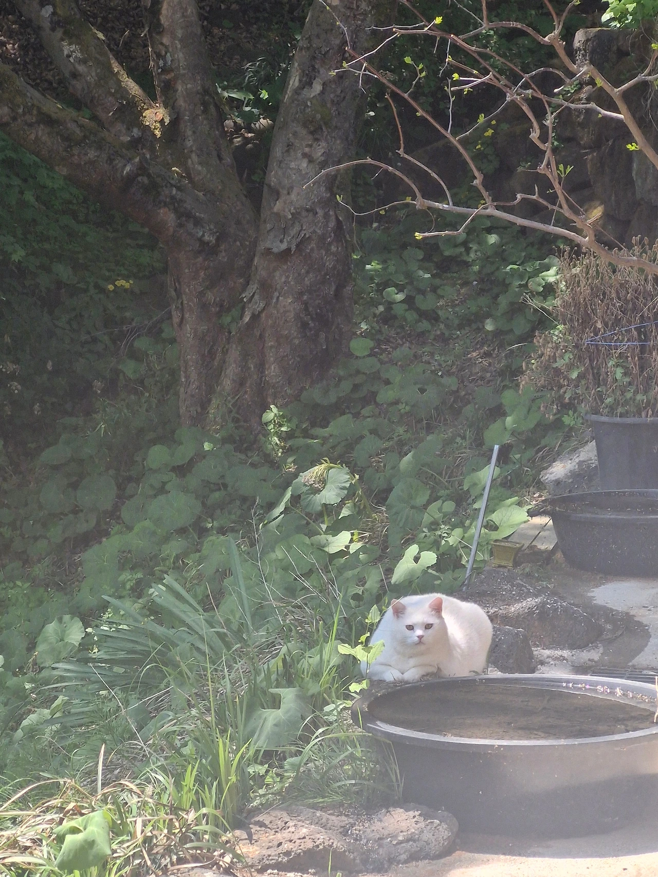 문득 시선이 느껴져 옆을 봤는데 고양이가 저 멀리 구석의 돌 위에서 날 쳐다보고 있었다.