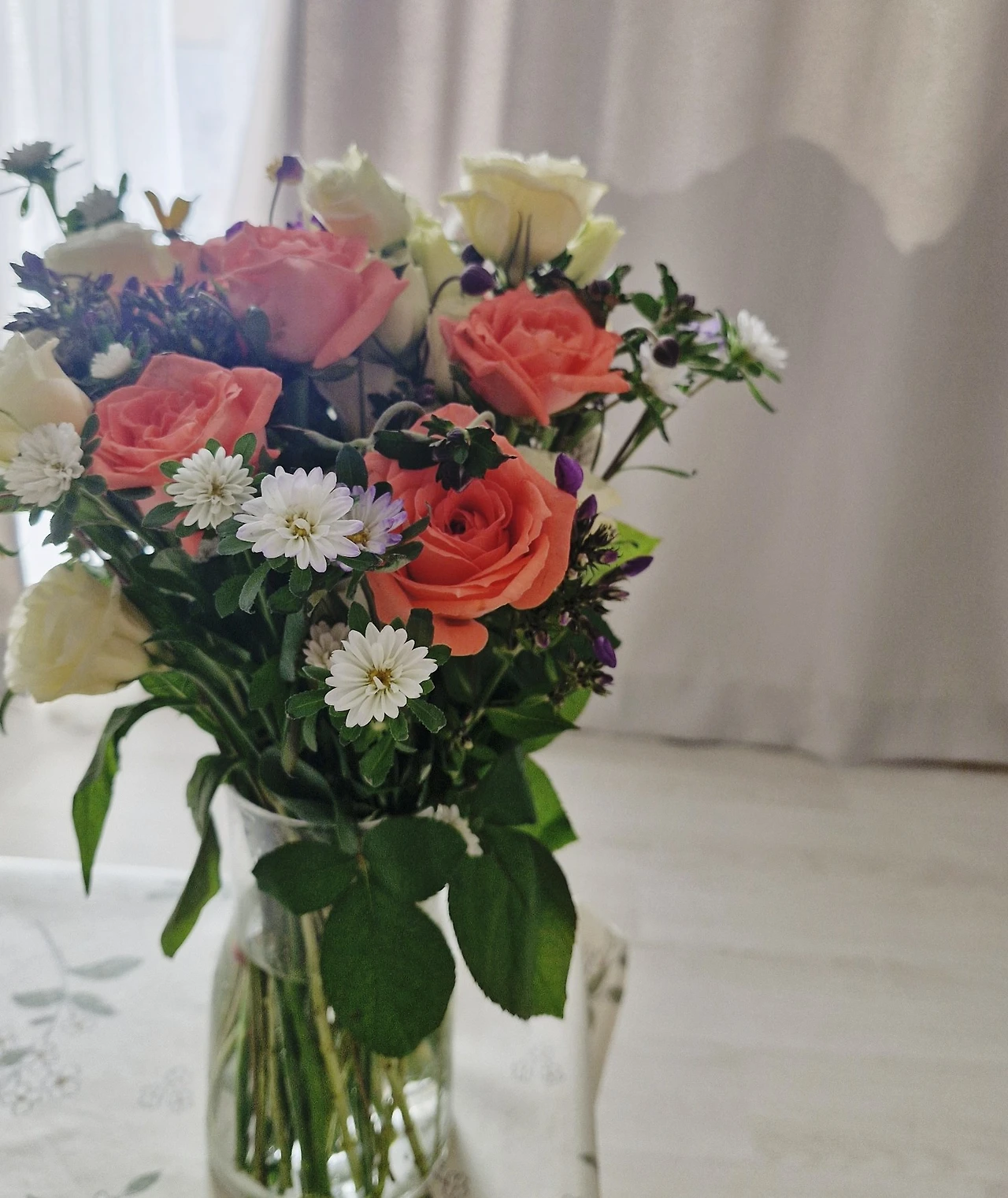 자주 꽃을 받으며 생긴 나름의 노하우들로 이번 꽃 정리도 후다닥해서는 거실 테이블에 올려뒀다.