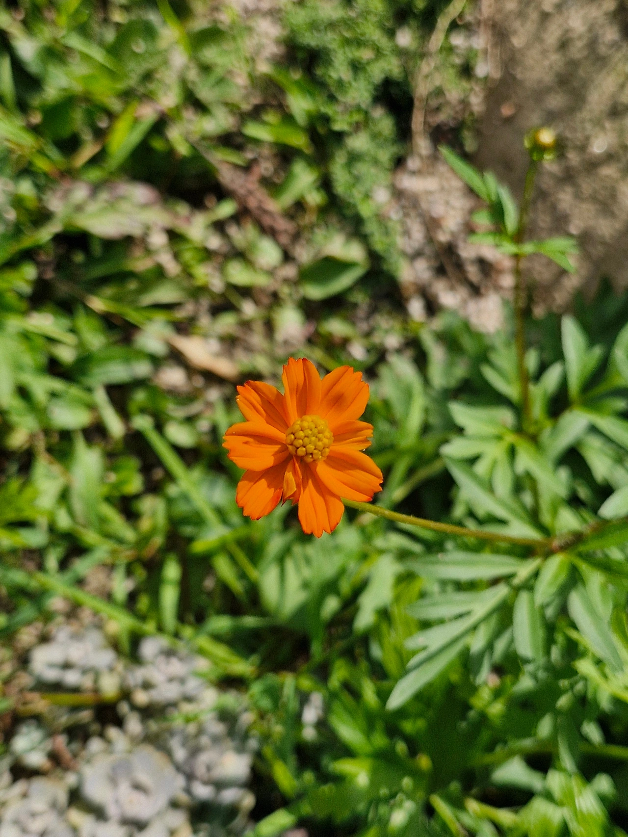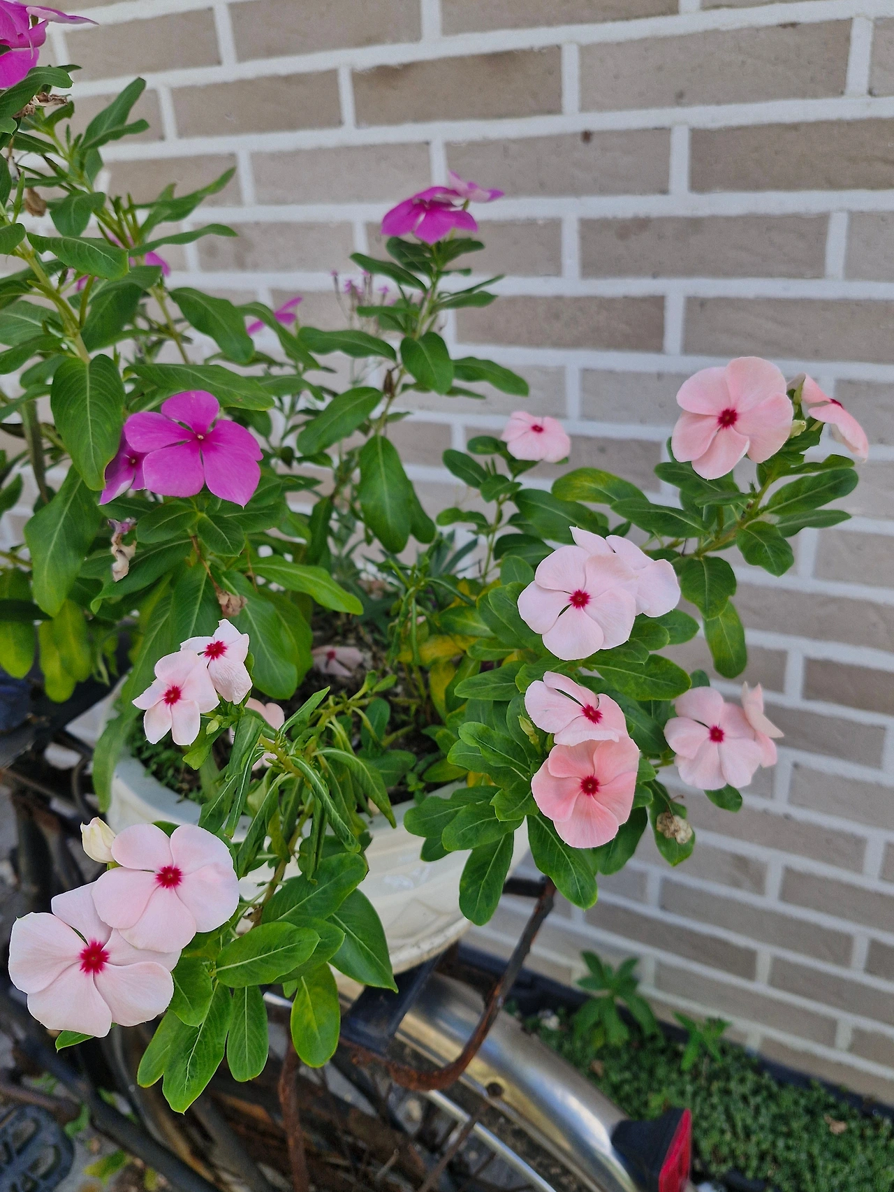 기와물결의 옆, 항아리 앞에 놓여있던 꽃.