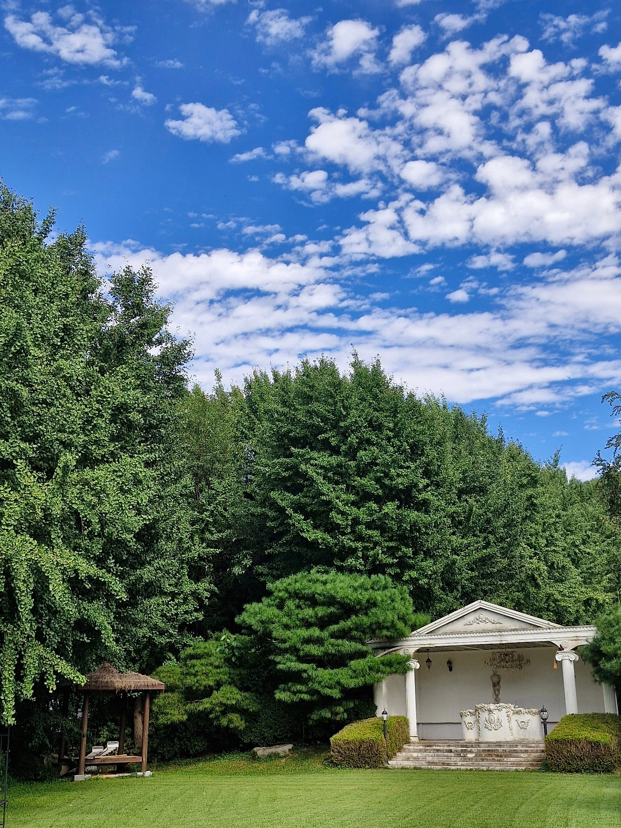푸른 자연과 하늘색 하늘 밑에