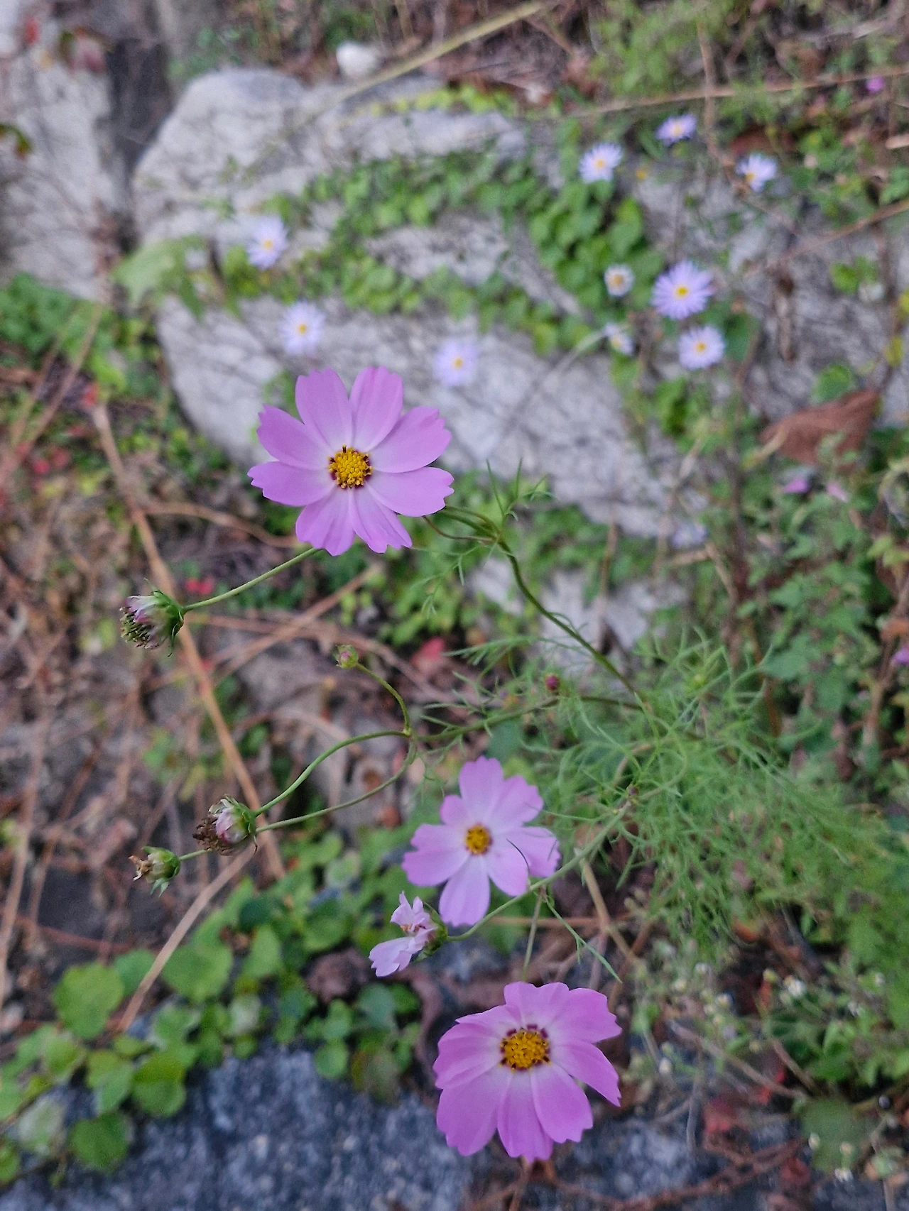 우리 동네엔 이제서야 만개한 가을의 꽃, 코스모스와 늘 만나는 강아지