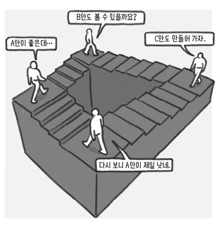 그렇게 폭발한 새벽의 아이디어 회의들은 결국 위의 이미지처럼 돌고 돌게 된다.