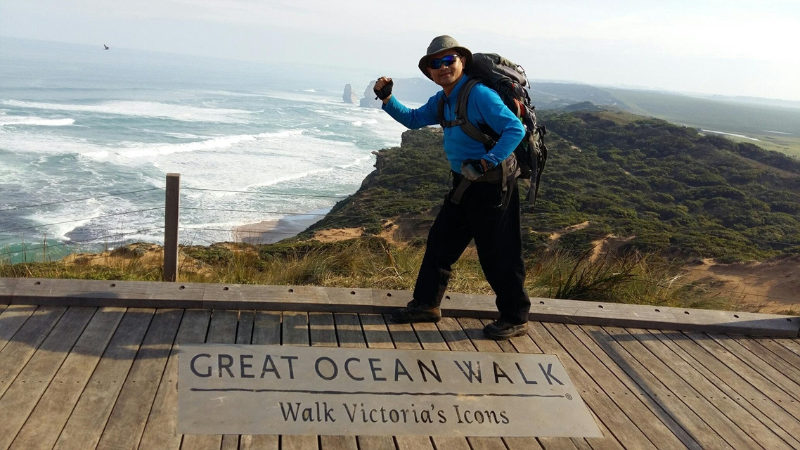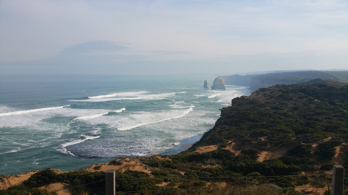 ‘그레이트 오션 워크, 빅토리아의 상징’ 전망대에 도착했다. 12 사도 바위가 가장 잘 보이는 포인트에 나무 데크로 근사한 전망대를 만들어 놓았다. 떠나오기 전 많은 사람들이 이곳에서 찍어 올린 인증 사진들을 보고 또 보았었다. 우리도 멋진 자세로 추억 한 장씩을 남겼다.