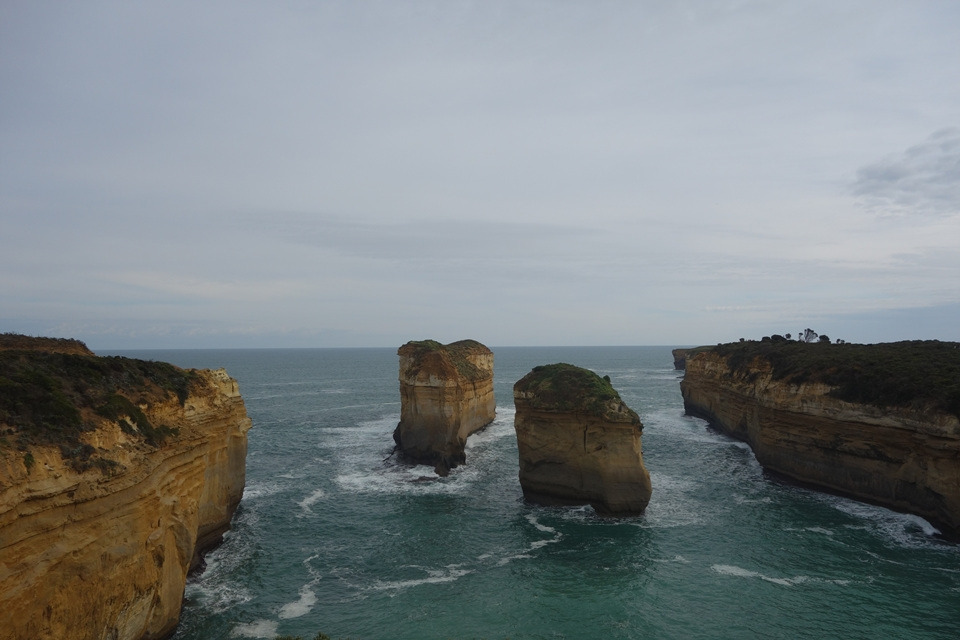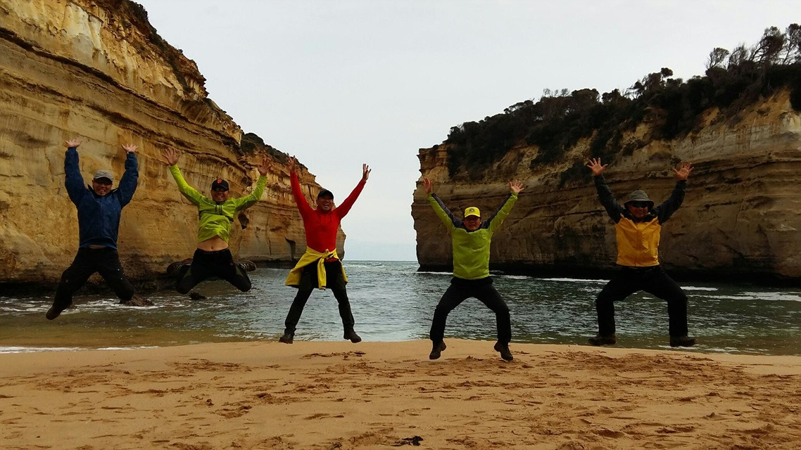 12 사도 바위 관광을 마치고 간단히 요기를 한 후 2시에 픽업 기사님을 만났다. 짐들은 이미 워크 91의 로벤으로부터 인계받은 상태였다. 짐 정리를 다시 한 후 멜버른으로 바로 돌아가지 않고 서쪽으로 6km쯤 떨어져 있는 명승지를 찾아갔다. 면도날 등(Razorback)과 로크 아드 조지(Loch Ard Gorge)라는 곳이다. 레이저 백은 왜 그런 이름이 붙었는지 알만했다. 면도날처럼 바짝 선, 깎아지른 바위가 절경이다. 로크 아드 조지도 협곡과 종유석 절벽이 멋진 풍경을 자아냈다. 마지막 피날레를 공중부양 샷으로 장식하고 우리의 호주 그레이트 오션 워크 대장정을 여기서 마무리했다.