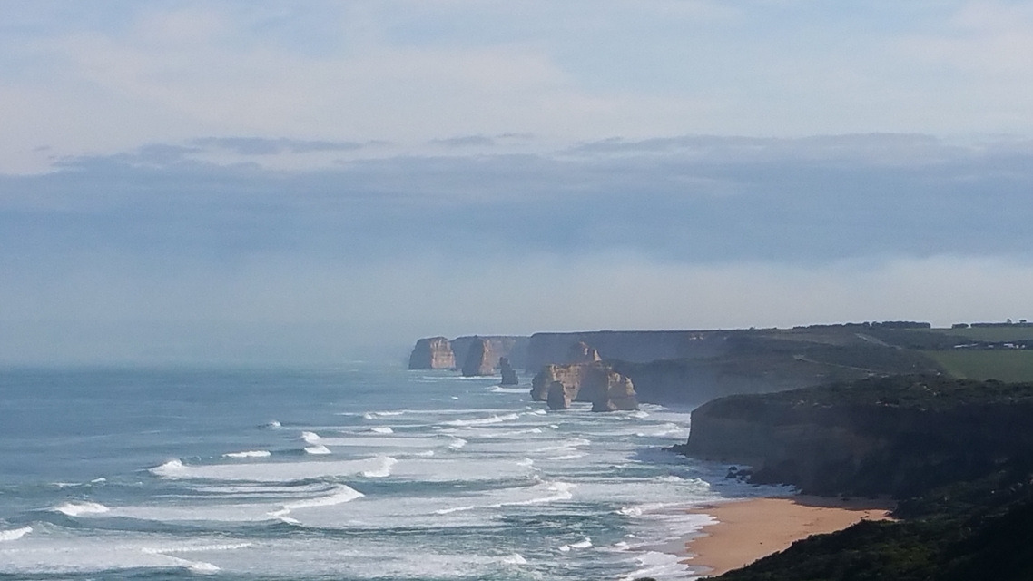 이제 축제의 시간이다. 12 사도 바위 전망대를 향한다. 비지터 센터에서 전망대까지는 왕복 20분 정도의 거리. 멋진 12 사도(현재 바위 4개는 쓰러지고 8개만 남아있다고 한다)를 배경으로 기념사진을 찍었다. 바람과 파도와 시간이 빚어낸 자연의 걸작이다. 수천 만 년, 수 억 년 세월의 시간이 바위에 새겨져 있다. 고작 칠십 년, 팔십 년을 살다가는 우리네 인생은 거기에 대면 얼마나 허황한가? 안달복달하지 말고, 살아있는 동안 즐겁고 보람되게, 알차고 행복하게 인생을 살 일이다.