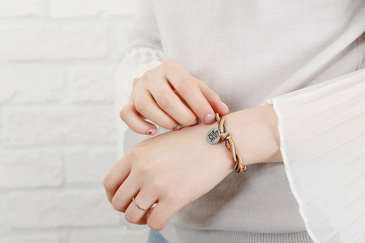 '희망의 끈' 이름의 팔찌는 네겹의 가는 끈이 세련되게 조화를 이루고 있다.