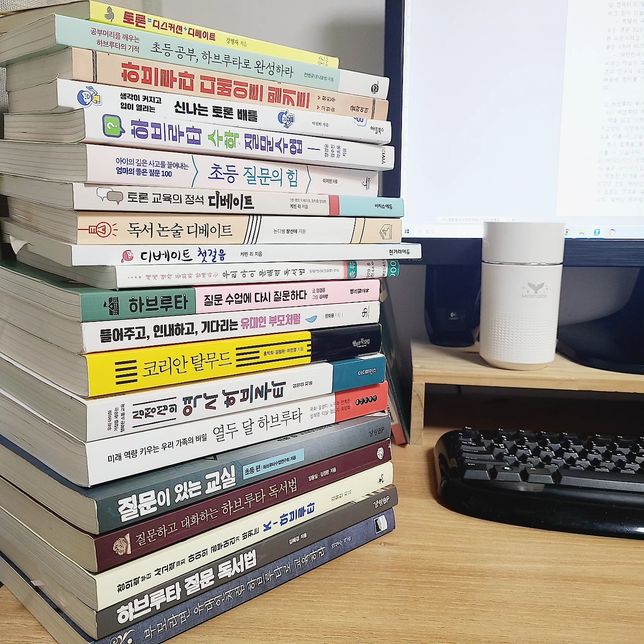 독서토론논술 원격 연수 촬영을 위해 대본을 쓰고 있다. 원고 쓰듯 한 차시 강의당 20-25분, 11쪽 분량의 샘플 원고를 써서 달라고 하셨다. 생각보다 긴 분량이었다. 하브루타와 디베이트를 각각 한 차시로 넣어두었다. 강의도 여러 번 해서 쉽게 쓸 수 있을 것 같아 집에 있는 책이란 책을 다 끄집어 와 원고의 출처를 밝혀가며 쓰고 있다.