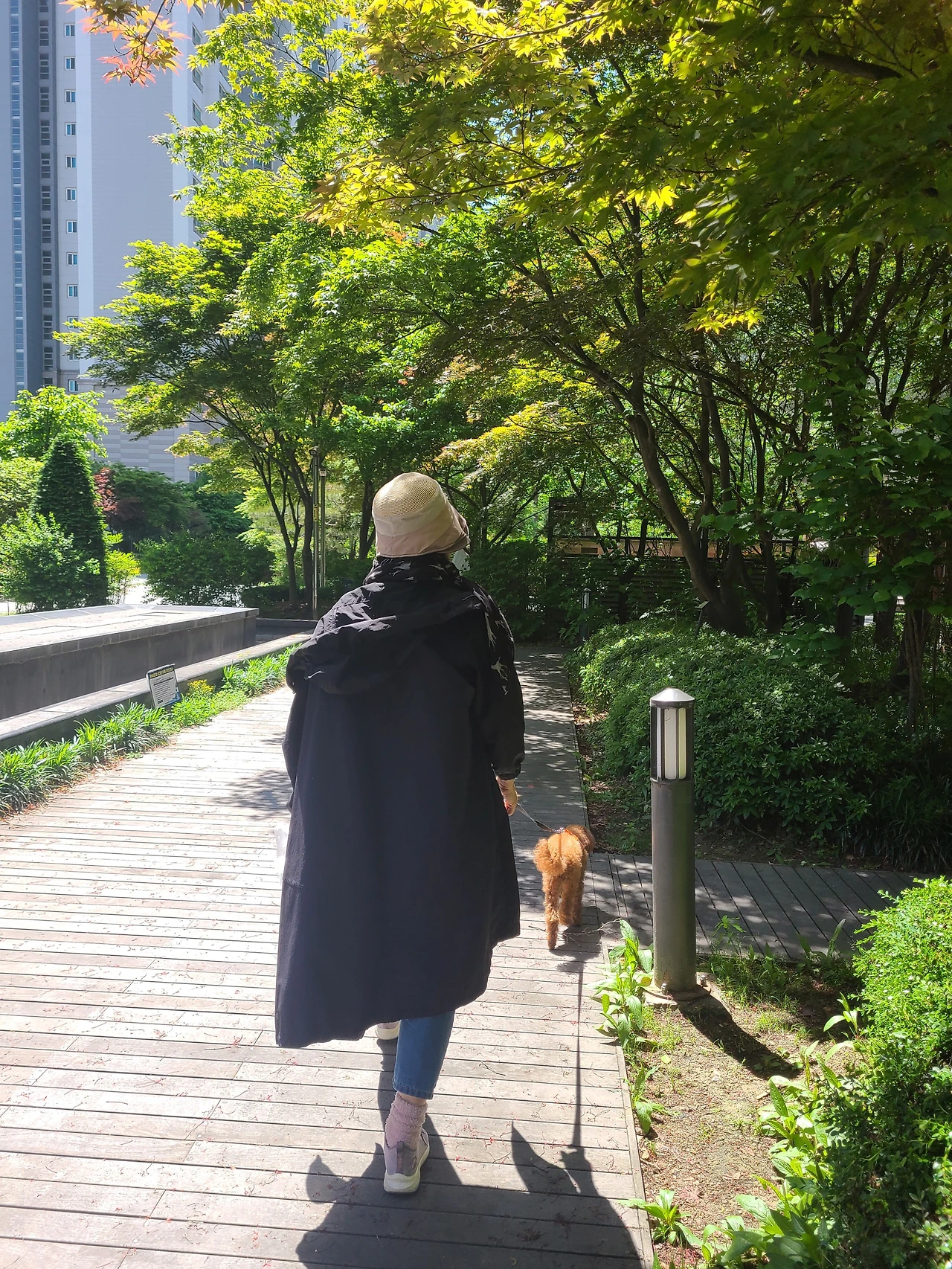 요며칠 비가 와서 못나간 탓에 신이 난 할배는 엄마를 요리조리 끌고 다녔다. 덩달아 나도 헉헉 거리며 뒤를 쫓았다. 매일 걷는 곳이라 그런지 자기만의 코스가 생긴 것 같았다. 요리조리 휙휙 잘도 앞장 서 갔다.