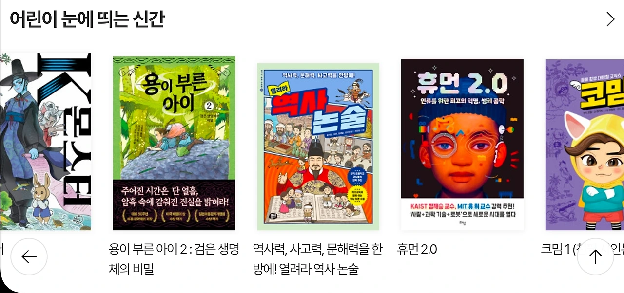 알라딘 홈피에 들어가면 '어린이 눈에 띄는 신간' 코너에도 올라와있다.