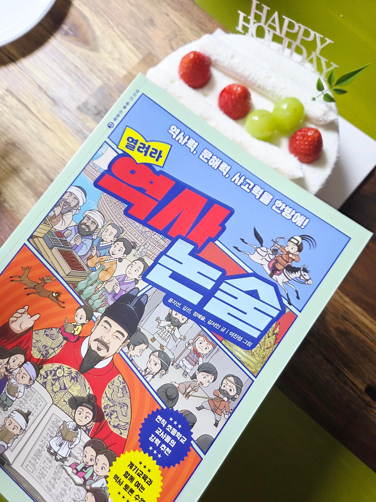 크리스마스 이브에 시댁 식구들과 한 해를 보내며 케잌 먹는데 <열려라, 역사논술>도 한 귀퉁이의 축하를 받았다.