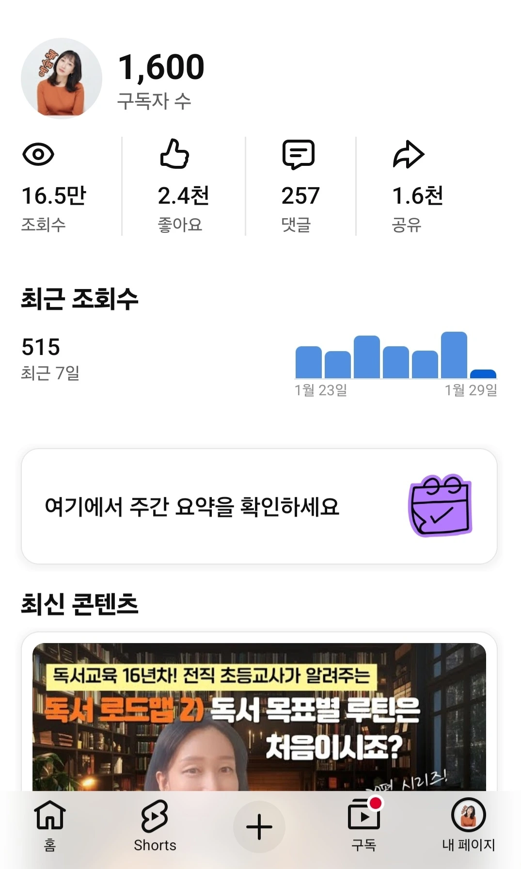 아침에 유튜브 구독자가 1,600명이 된 것을 발견했다.