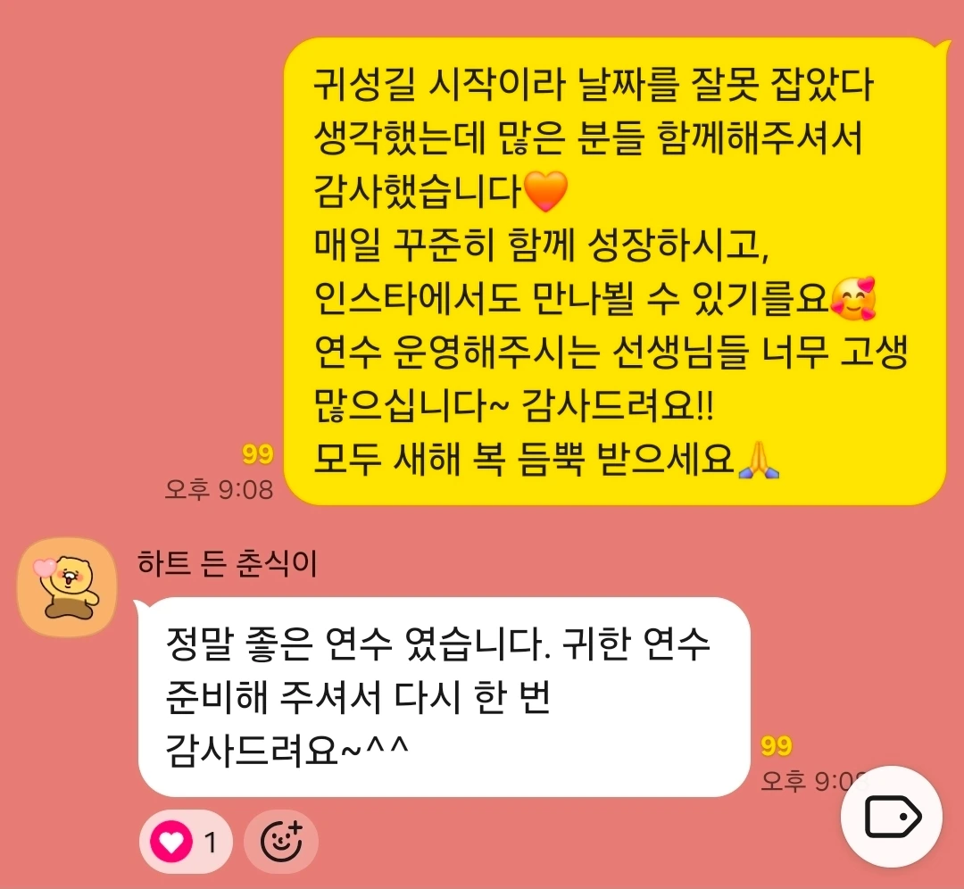 뒤늦게 채팅방에 인사를 남겼다.