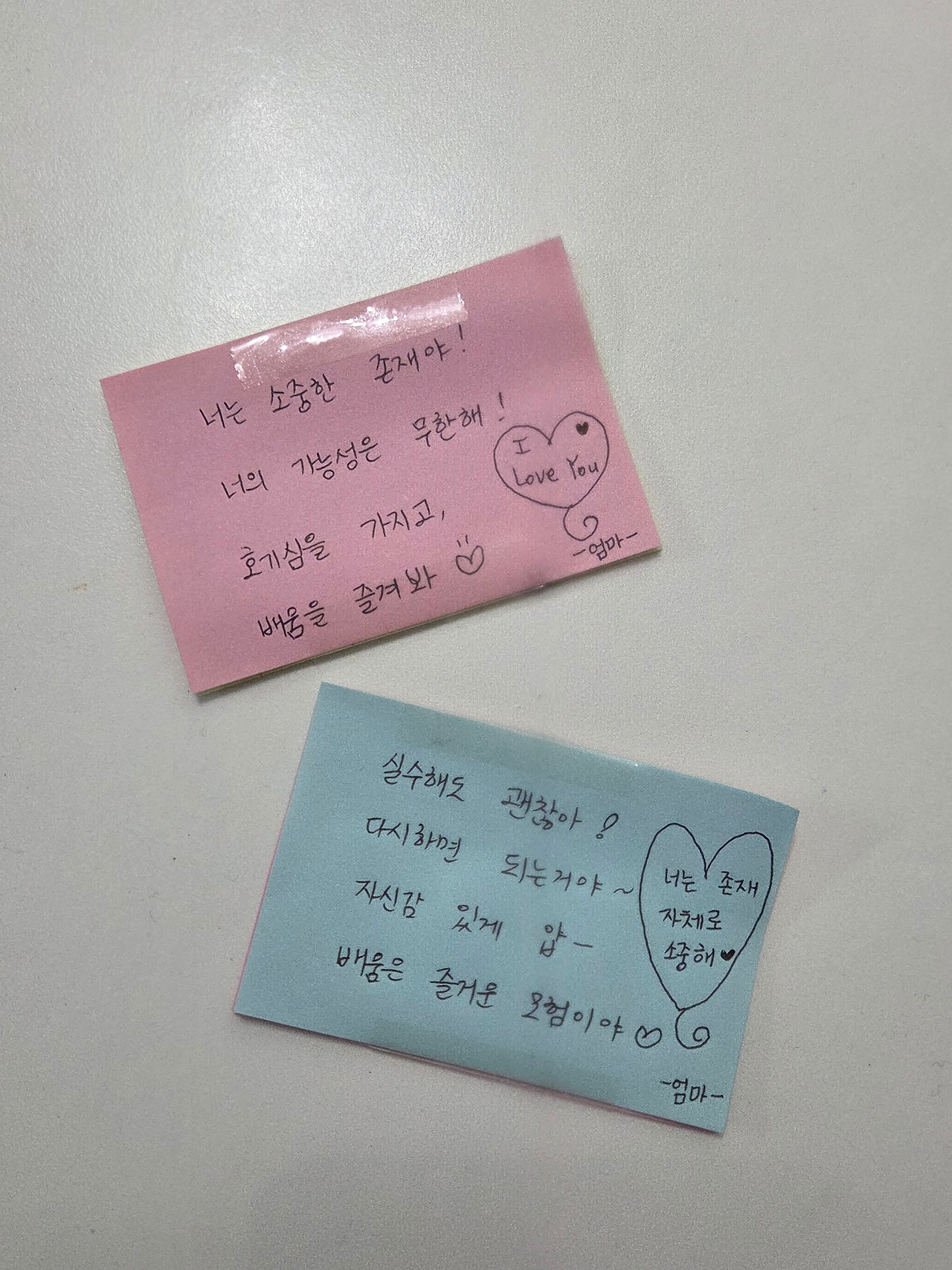 5학년 때 가장 무서웠던 선생님이 담임 선생님이 되셨다는 소식에 울고 불고 난리난 아들. 손 꼭 잡고 옆에 누워 잠 들때까지 걱정 인형 역할을 해주고, 아침엔 필통에 응원 쪽지도 써서 넣어줬다.