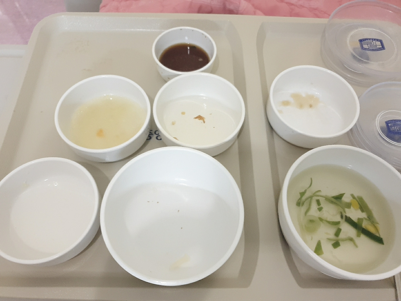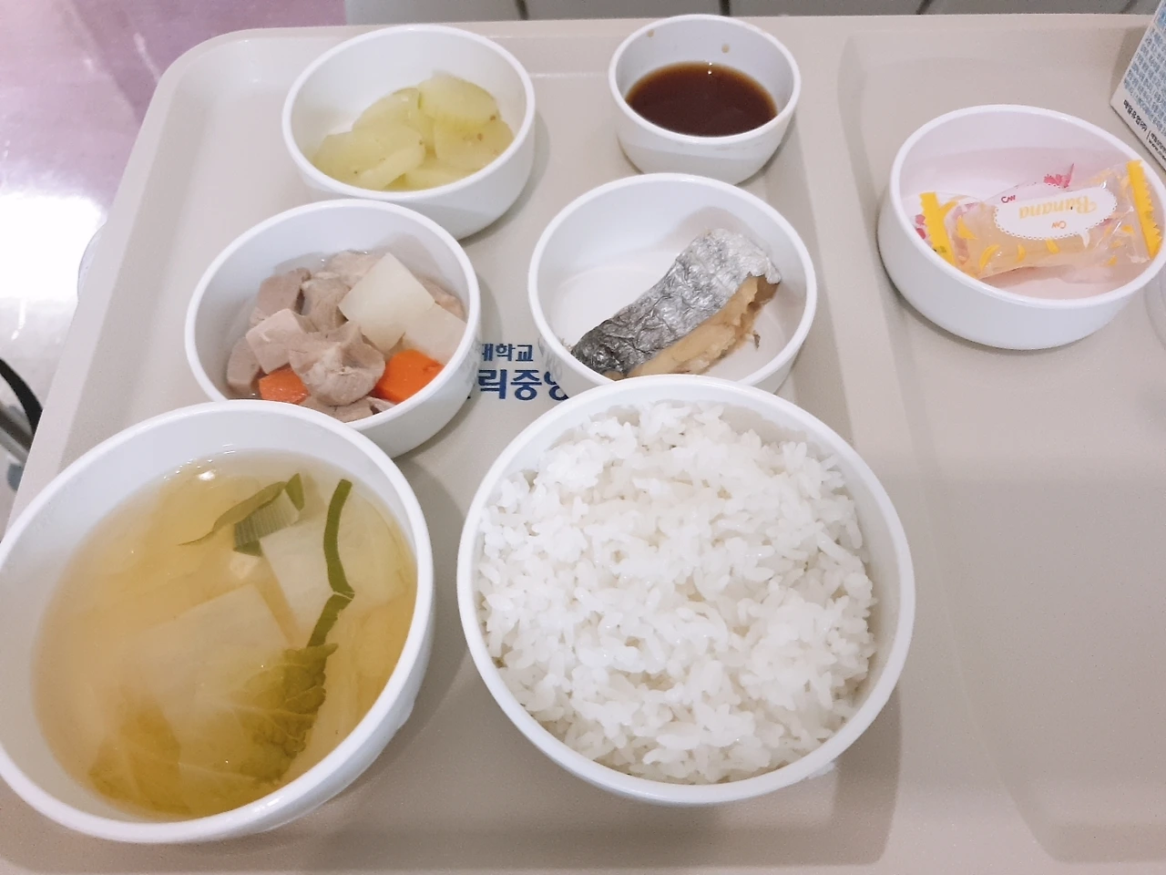 정말 맛있어서 혼자 신나서 고개를 까딱 거리며, 룰루 하는 마음으로 모두 싸악 비웠다. 투석환자의 기본, 국은 건더기 위주로 조금만.