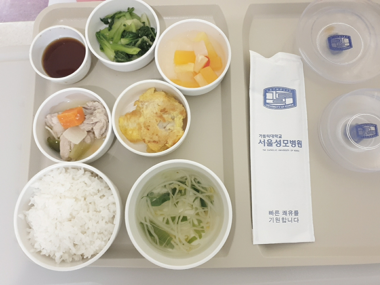 배선실에서 식사 안내문을 보니, 점심은 늘 특식(일품식)이 나온다던데 나는 입원 내내 점심을 먹어본 적이 없다. 또 점심을 굶게 될 터이니, 오늘 아침은 든든하게 먹어야지. 그런 굳은 결심을 한 내게 주어진 14일의 아침식사는 최악이었다.
