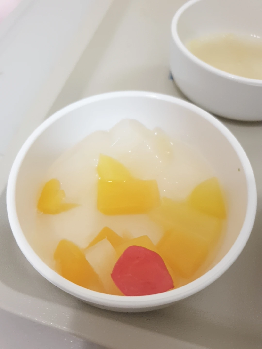간이 안되어있지만 아삭아삭한 식감이 너무 좋았던 청경채 나물, 약하게나마 적절한 간이 베어 담백하고 맛있었던 채소 닭찜, 가시가 하나도 없이 부드럽고 고소했던 동태전. 맑은 콩나물국과 쌀밥. 후르츠 칵테일이 또 나왔다.