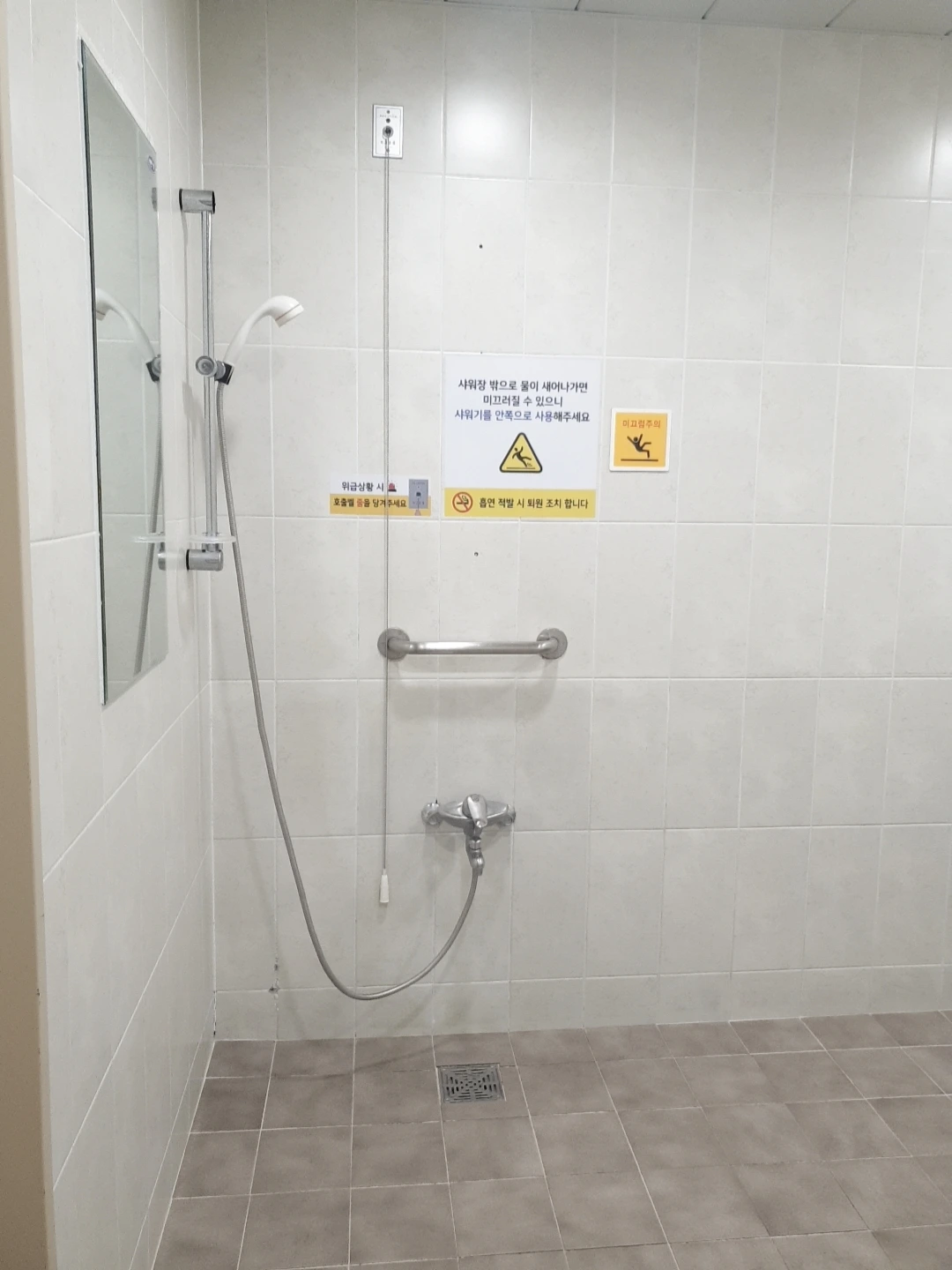 찾기 어려운 구석에 샤워실이 있다. 바늘을 꽂고 있는 데다 당장 몇 시간 전에 시술을 받았기에 샤워는 안될 것 같아서, 깔끔하게 머리만 감기로 한다.