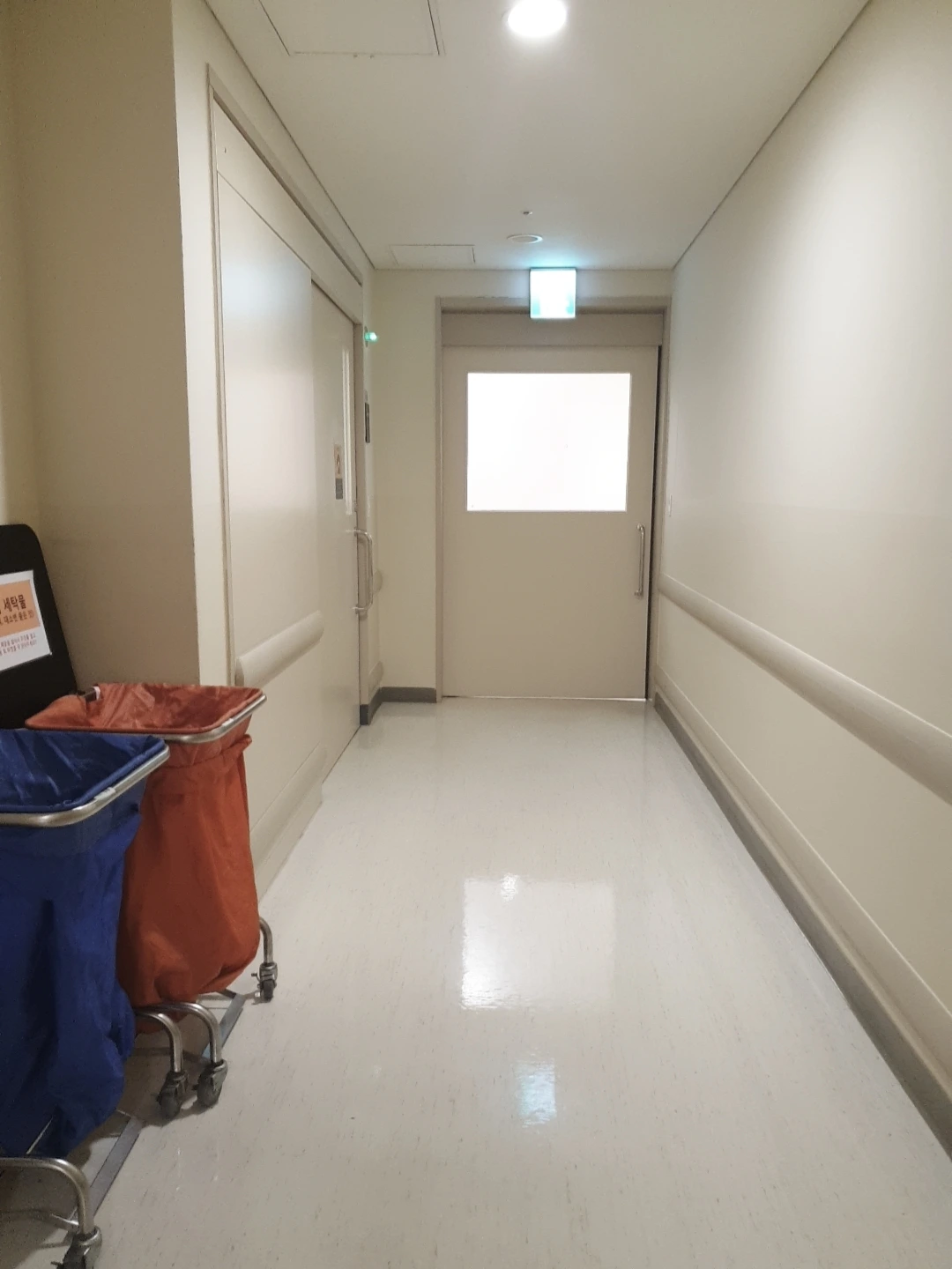 엘리베이터를 타고 무사히 열네 개 층을 올랐다. 우리 병동 입구로 누군가 들어가기에, 복도에 간호사 선생님들이 없는가 살펴보고 그분의 뒤를 따라 샤샥, 병실로 들어와서 내 방의 커튼 속으로 쏙 들어와 버렸다.