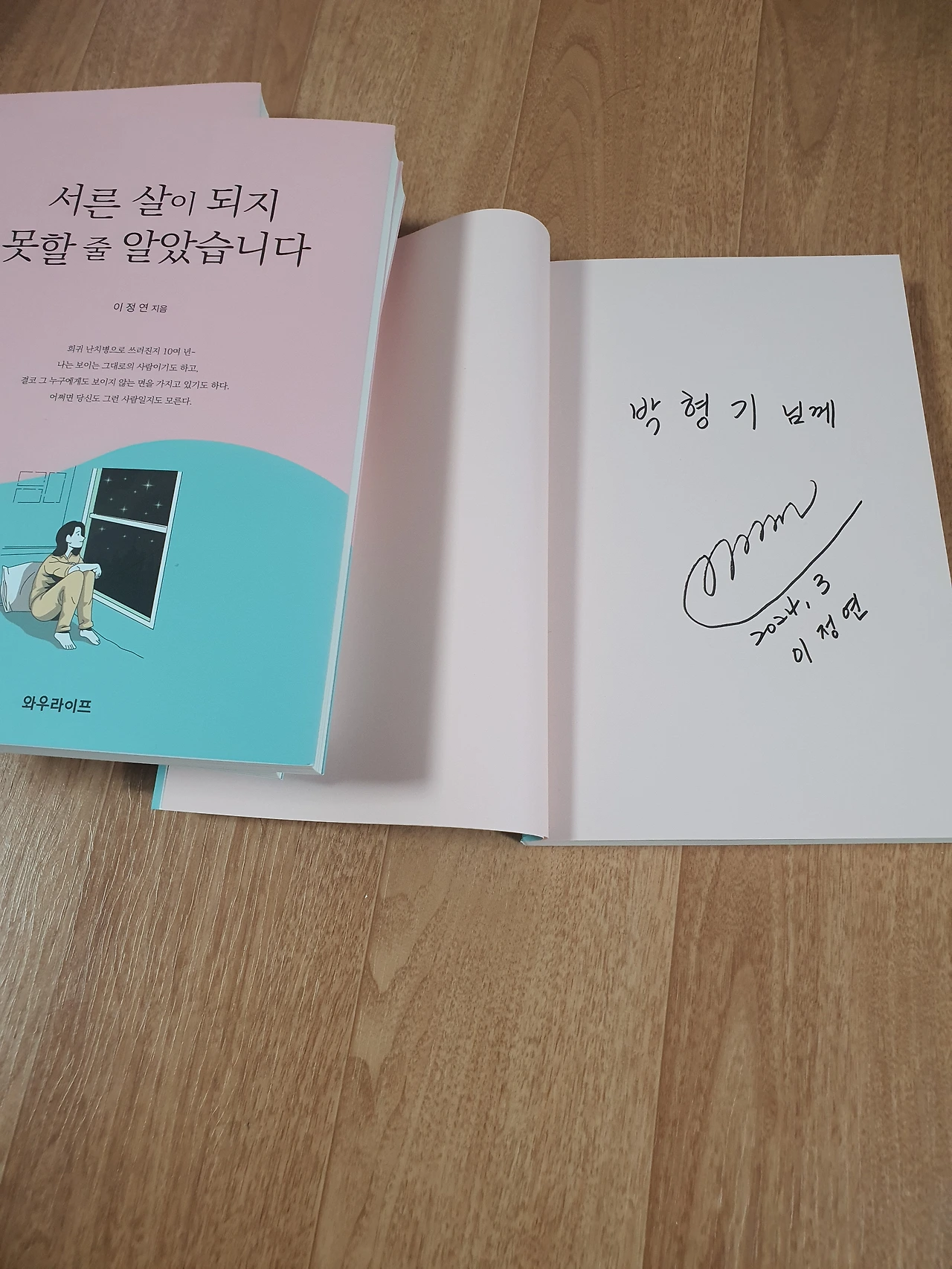 엄청 여유로운 척하며 10권 정도 사인을 했습니다. 위 사진이 첫 내지 사인입니다. 저 사인하면서, '오, 이정연! 슈퍼스타가 되기 위해 태어난 운명일지도 몰라!' 했습니다. 키키키.