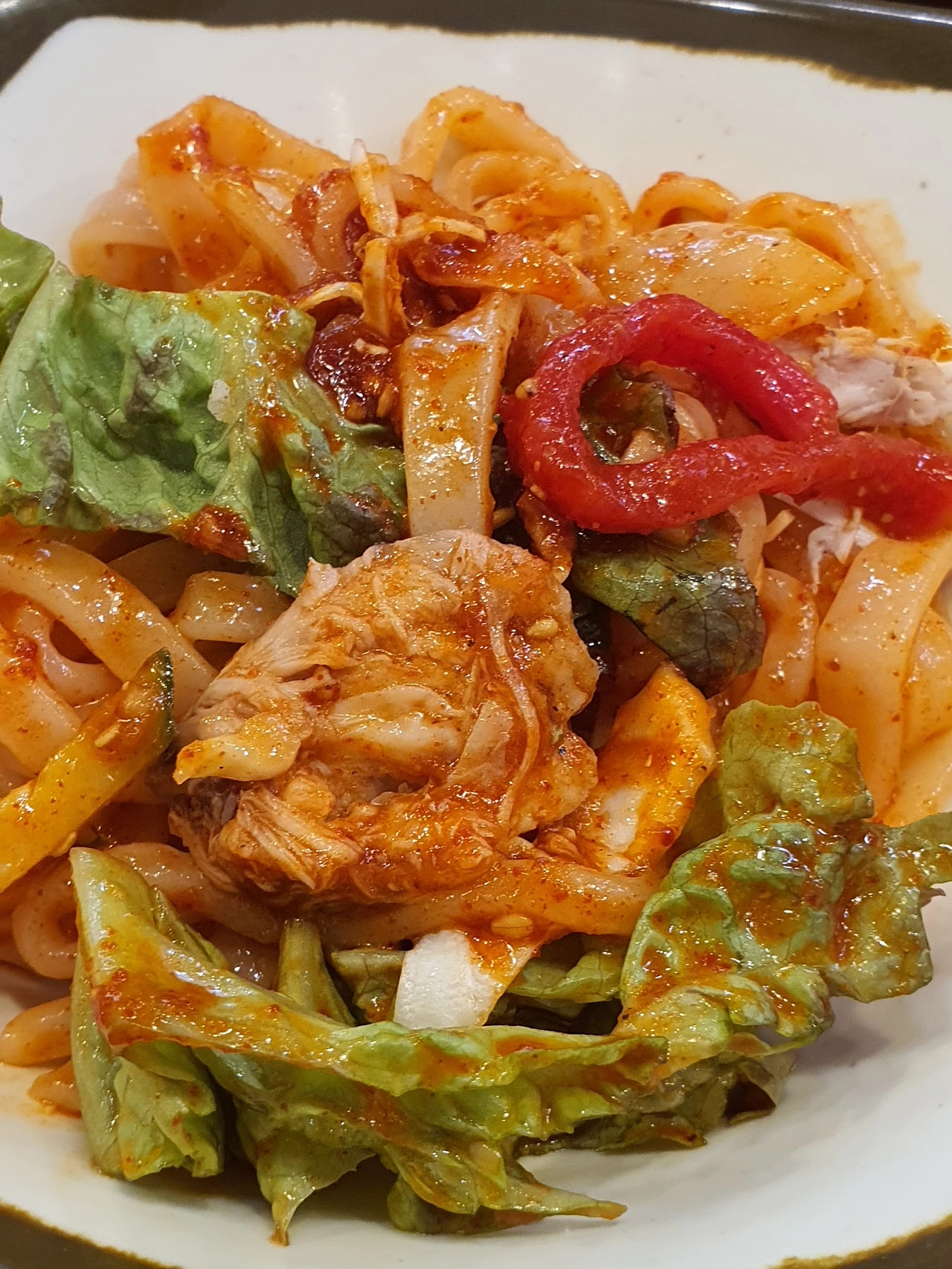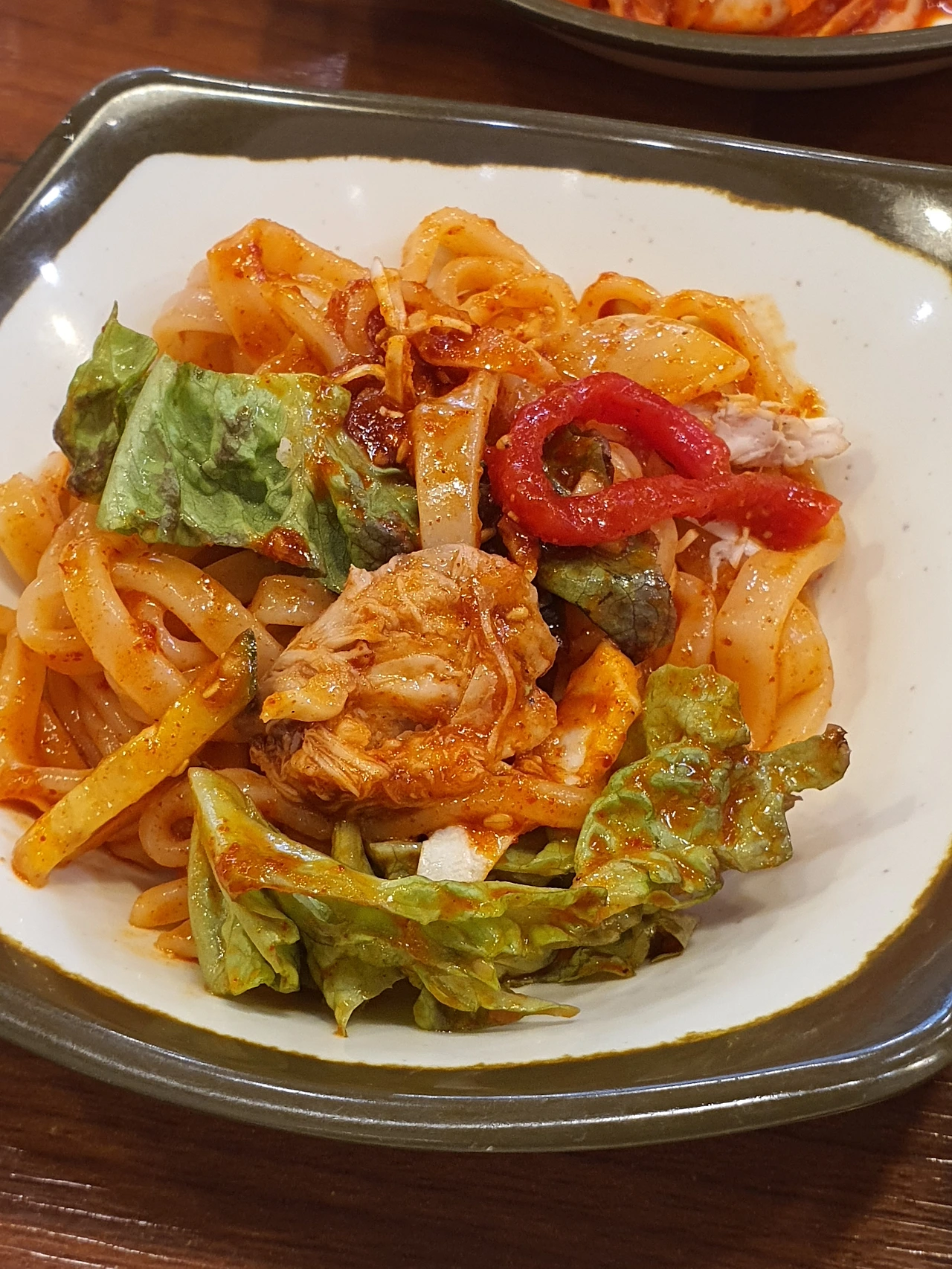 정남이의 칼비빔면은 삶은 닭고기 살을 잘게 찢어 넣었고, 상추와 채소들이 곱게 채 쳐져 들어가 있다. 칼국수 면을 대체 왜 고추장 소스에 비벼 먹느냐고, 저게 대체 무슨 맛이겠냐며 티브이에 나오는 칼비빔면들을 폄하했던 지난날의 이정연은 고개를 숙였다.