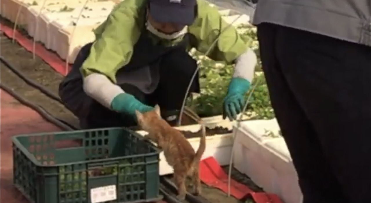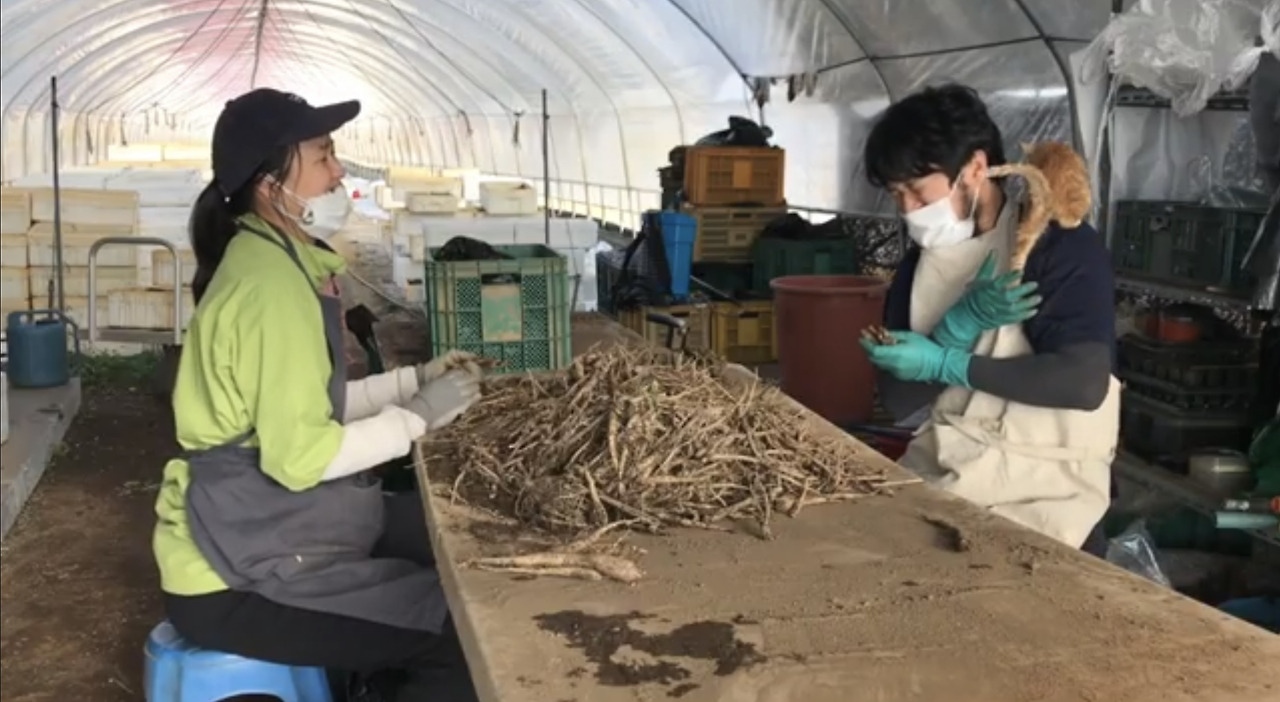 더덕 선별 과정에서 갑작스러운 아기 고양이의 습격으로 정신을 못 차리는 장면입니다.