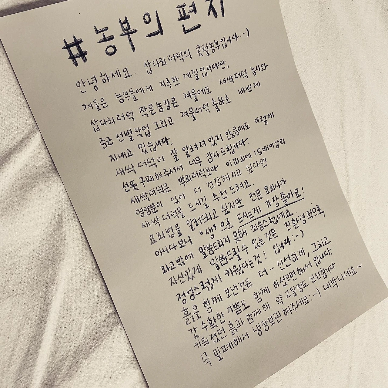 우리는 농사꾼이다. 농사를 업으로 삼고 땅에서 땀 흘려 일하는 농부이다. 나와 남편은 농사를 사랑한다. 그리고 농부가 가치 있는 직업임을 널리 알리고 싶은 청년들이다. 농부는 생명을 키우고 생명의 소중함을 알고 우리 국민들의 먹거리를 책임지는 막중한 일을 하는 사람들이다. 그래서 우리는 우리나라의 농업에 대한 기피현상이 없어지길 바란다. 또 농부가 되어싶어 하는 사람이 많아지길 바란다.