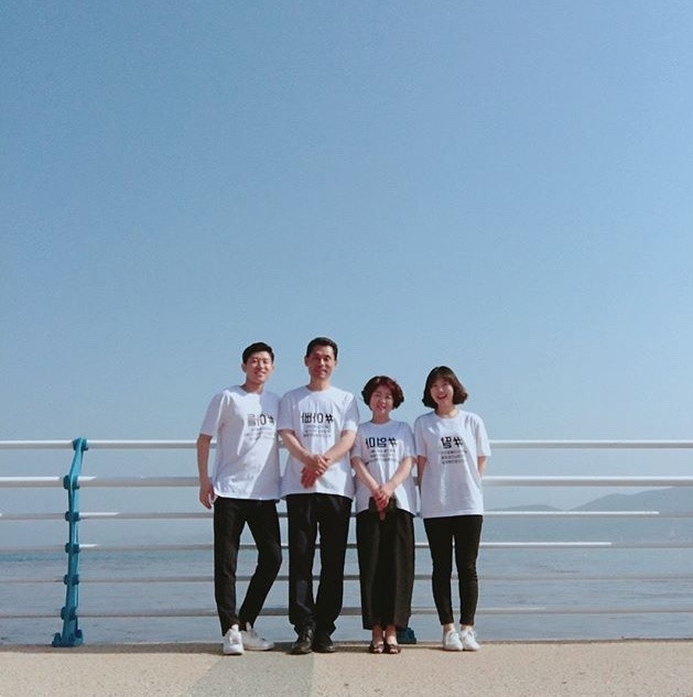 풀 죽은 나를 보다 못한 동생의 제안으로 우리는 가족티를 입고 남은 하루를 보냈다. 내가 고심해서 제작한 가족티에는 ‘#엄마 #왕년에꽃미녀출신 #우리집비선실세 #8남매중얼굴도안본다는셋째딸’ 같은 문구가 프린트돼있다. 사진만 찍고 잠옷으로 전락하기엔 투자한 시간과 비용이 아까웠단 말이다. 결국엔 바다를 배경으로 셀프 스냅사진도 찍었다. 지나가는 분들이 멋지다며 인사를 하기도 하셨고, 무슨 프로그램을 촬영 중인 건지, 티는 어디서 만들었냐고 질문을 하기도 하셨다. 부끄러우면서도 특별한 시선을 받으니, 아쉬움과 억울함이 조금씩 풀려갔다. 저녁쯤에는 엄마의 기분도 어느 정도 풀려서 좋게 좋게 생각하기로 하셨다. 매사 나한테 긍정적으로 생각하고 화내지 말라고 하면서 저날 만큼은 말과 행동이 다른 엄마였다.