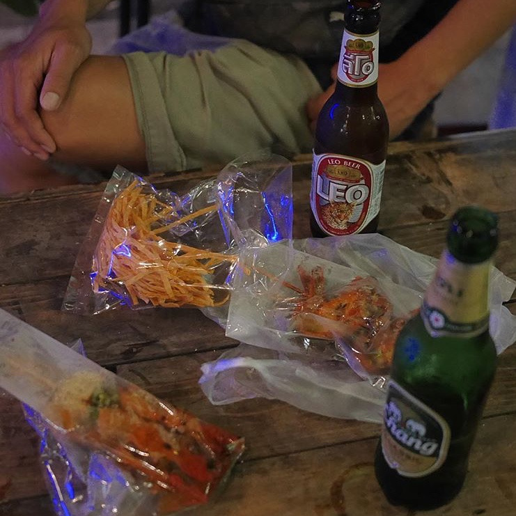 세계를 뒤집어놓은 싸이 강남스타일의 한류 열풍이 그에게도 왔었는지 제법 비슷한 동작을 취하며 춤을 춰보라 한다. 그럼에도 두 눈만 깜빡일 뿐 아무 미동이 없자 그는 곧장 클럽 밖으로 나가 야외 펍에 자리를 잡는다. 오는 길에 프리샤의 단골가게에서 사 온 쏨땀 한 봉지, 닭꼬치를 테이블 위에 펼쳐두고 각자 맥주 한 병씩을 주문했다. 맥주는 얼음을 넣어 먹어야 한다며 주장하던 그에게 얼음을 넣으면 김이 빠져 맛이 없다고 얘기를 건네며 각국의 문화 차이를 실감할 수 있었다.