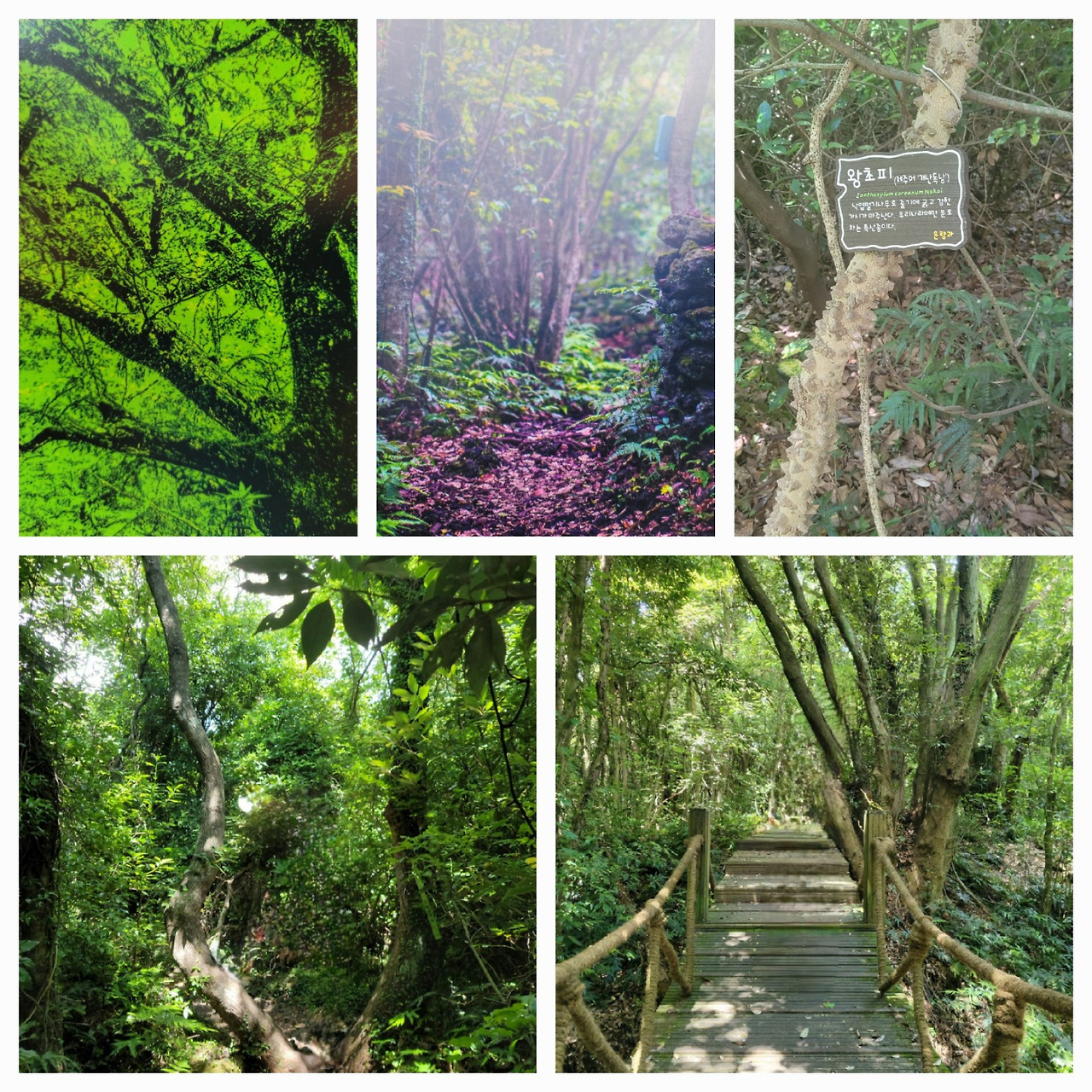 화산활동의 잔재들인 암석으로 만들어진 길과 흙으로 이루어진 길, 나무로 만들어진 길이 구불구불 굽이져 끊임없이 나온다. 5개의 탐방로 코스 중에 왠지 끌리는 테우리길을 택했다. 들리는 새소리가 숲의 여백을 메꾸는 듯, 혼자 걷는 게 아니구나 느끼며 발걸음을 재촉한다. 양옆으로 고사리와 이름 모를 나무들이 위, 아래로 뻗어 숲을 가득 채웠다. 이제는 먹구름 낀 하늘도 그 푸르름에 뒤덮여 보이지 않는다. 곶자왈의 이러한 은밀함 때문에 4.3 항쟁 때에는 제주 주민들의 훌륭한 은신처였다고 한다. 오늘은 이 숲에 내가 숨어버리고 싶다.