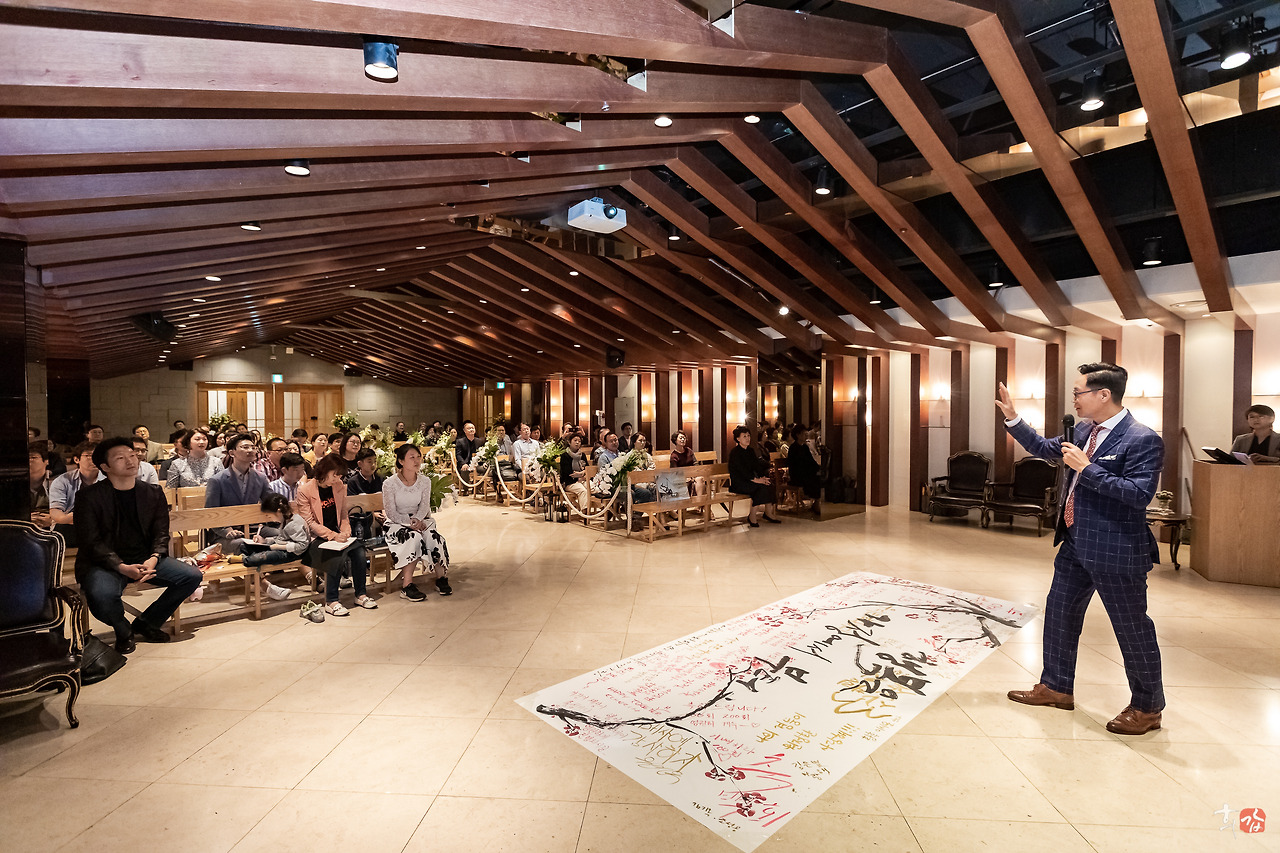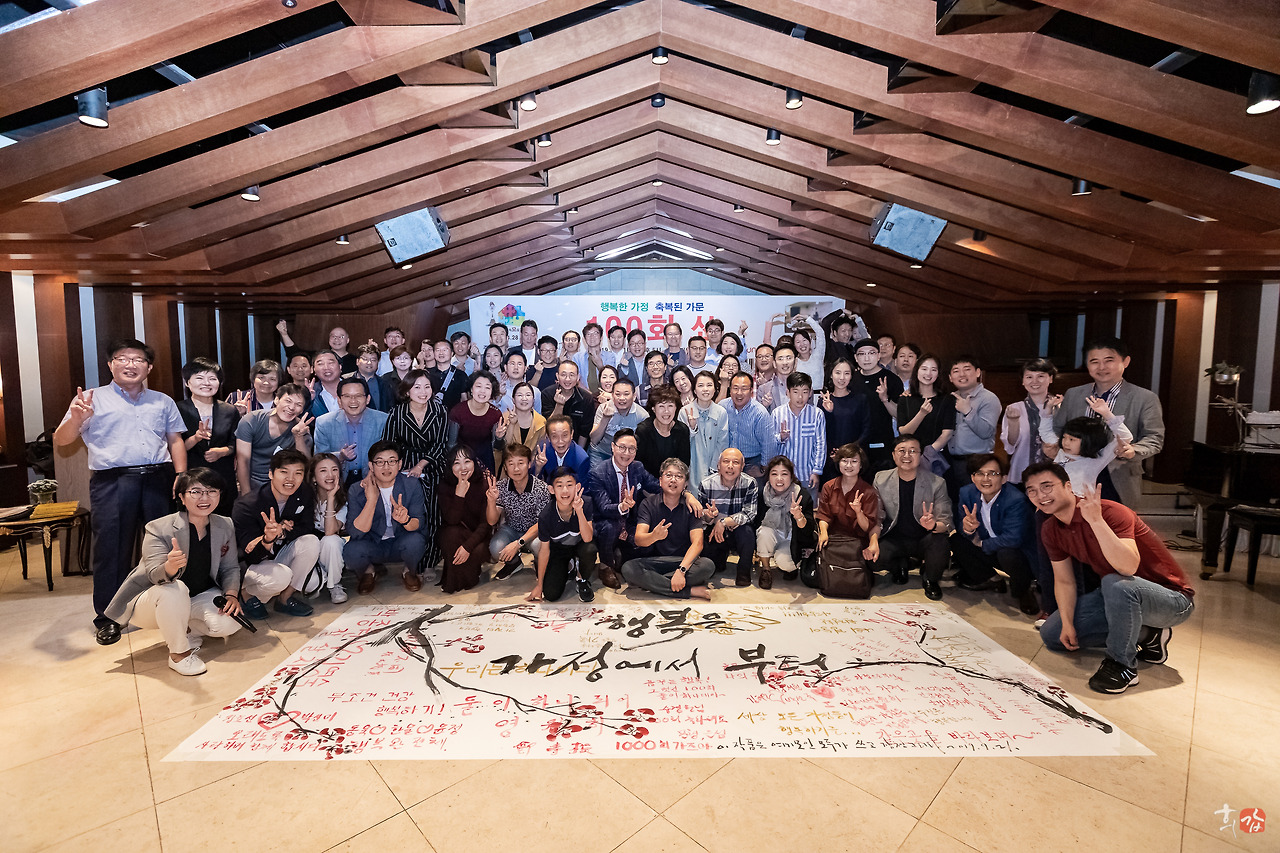 그제의 하이라이트는 단연코 김성태 KBS 아트비전 영상그래픽팀장의 캘리그래피 퍼포먼스였죠. 식전공연을 멋지게 장식해준 김성태 작가는 모든 관객들을 하나로 만들었습니다. 5m의 대형 한지에 청중들이 한 분도 빠짐없이 각자의 소망을 적어 나갔고 마지막으로 작가께서 아름다운 매화를 피워 주셨고 ‘행복은 가정에서부터’라는 절대 진리를 아름다운 서필로 화룡점정을 찍으셨습니다. 이 자리를 빌려 재능기부를 해 주신 김성태 작가에게 감사의 말씀을 드립니다. 뒤풀이에서 하신 작가님의 소감에 더 가슴 뭉클해졌습니다. “그동안 출연료 받고 한 어떤 행사보다 재능기부로 했던 이번 행사가 더 보람 있었다” 이 분 참 멋진 분이죠?
