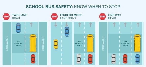 버스가 멈추고 빨간색 STOP 사인이 펼쳐지면, 도로의 어느 방향에서든 반드시 정차해야 한다.