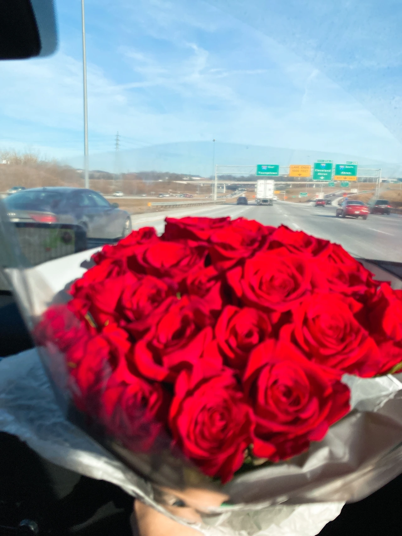 클리블랜드까지 한 번 경유를 해야 하지만 운 좋게 눕코노미에 성공해 긴 시간 편하게 누워갈 수 있었고, 장장 18시간의 여정 끝에, 드디어 남편과 미국에서 다시 만났다. 투박하게 포장된 장미 꽃다발과 함께