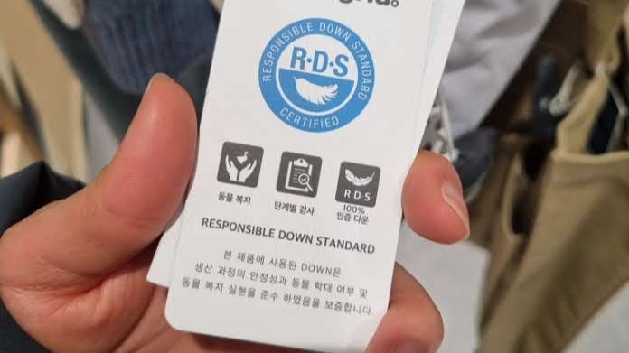 백화점에 들어서자마자 괜찮아 보이는 롱패딩이 마네킹에 입혀져 있었다. 그 브랜드가 있는 층으로 올라가니 어렵지 않게 진열해놓은 것을 찾았다. 그런데 역시나 구스다운이었다. 상품태그에는 프리미엄 구스다운인 것을 자랑스럽게 선전하고 있었다. 그 뒤의 택에는 RDS 인증 마크와 함께 "본 제품에 사용된 DOWN은 생산 과정의 안전성과 동물 학대 여부 및 동물 복지 실현을 준수하였음을 보증합니다.”라고 쓰여있었다.
