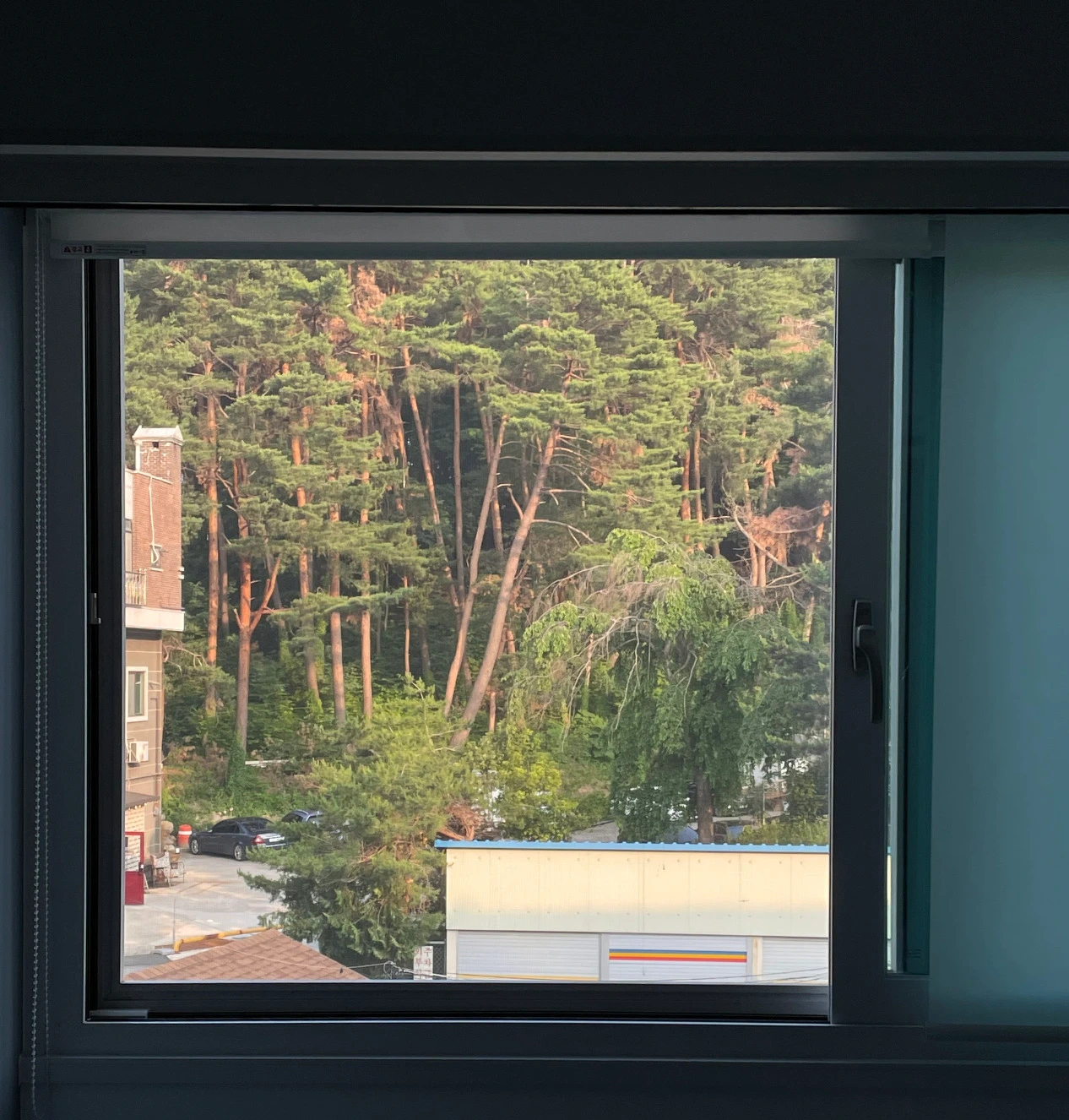 그렇게 떠나는 날만 손꼽아 기다린 여행이었는데, 기대와 달리 여행의 시작은 두려움과 함께였다. 비가 추적추적 내리는 날씨 탓도 있었겠지만, 혼자 여행은 처음이라 조금 겁을 먹었던 것 같다. 강릉으로 가는 기차 안에선 복잡미묘한 감정들이 피어났다. 강릉역에 도착해서는 숙소까지 택시를 타야 하나, 버스를 타야 하나, 지도를 봐도 어디가 어딘지 모르겠고, 숙소에 겨우 도착해서는 대충 짐 정리를 한 뒤 침대에 뻗어버렸다. ‘잘 지낼 수 있겠지’라는 걱정과 함께 잠이 들었고, 아침에 일어나 창밖을 본 나는 깜짝 놀랄 수밖에 없었다.