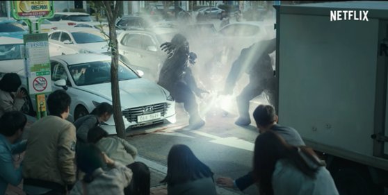 드라마 ‘지옥’의 세계관에서는 천사가 나타나 불특정 인물에게 “당신은 몇 날 몇 시에 죽는다. 그리고 지옥에 간다”라는 고지를 내립니다. 예정된 시간이 되면 지옥의 사자들이 등장해 그를 데려가죠. 그런 끔찍한 장면이 대낮에 그것도 서울 한복판에서 많은 사람이 지켜보는 가운데 일어나게 되는데요.