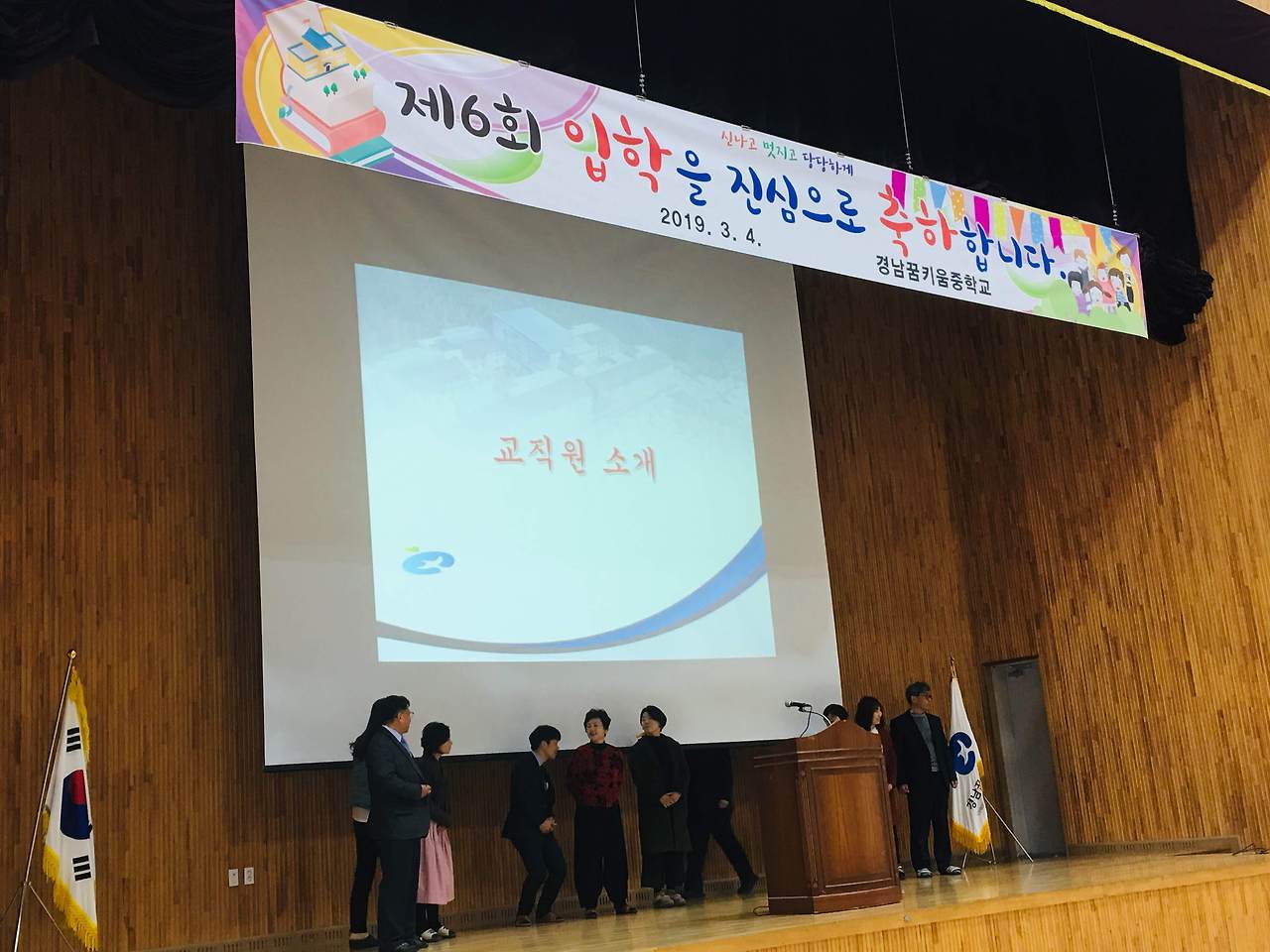 2019년 3월 4일, 경남꿈키움중학교는 개학 및 입학식을 했습니다. 오전에 재학생들은 미리 등교해 개학식을 했고 오후에는 입학식을 했습니다.