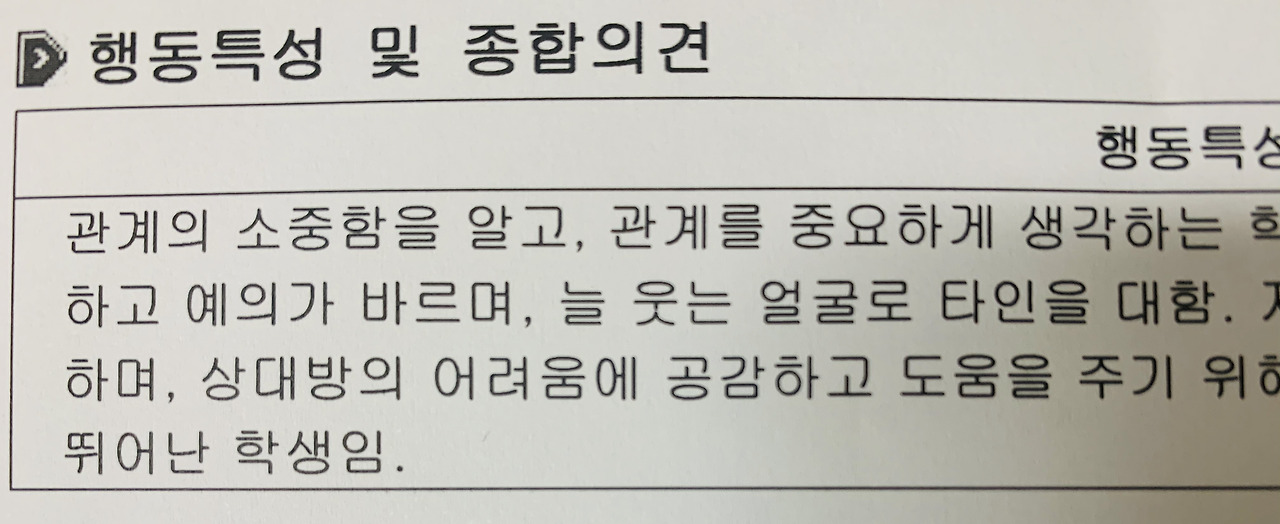 생기부를 받자마자 제일 뒷 장을 펼쳤습니다. 딸아이 친구가 물었습니다.